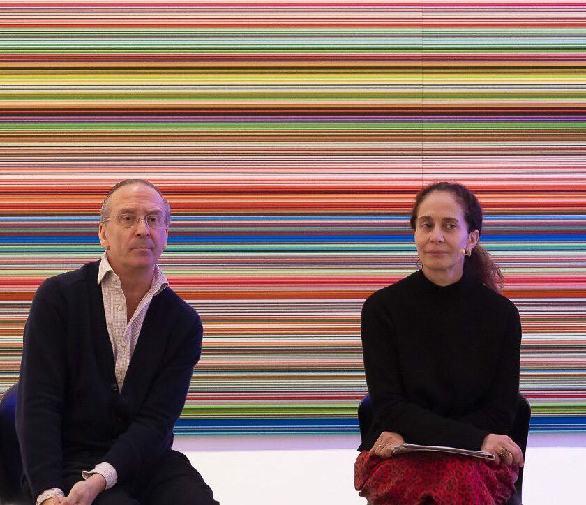 Manuel Fontán del Junco, María Zozaya Álvarez y Aníbal Santaella en la presentación de la exposición 'Lo tienes que ver. La autonomía del color en el arte abstracto'. Fundación Juan March. Fotografía: © Luis Domingo.