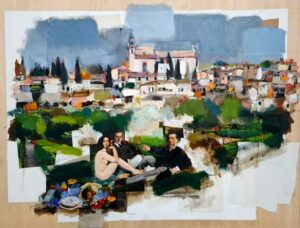 Pablo Ugartetxea, ‘Cho… Cho Pin – Sand Menage a Trois en un invierno en Mallorca’ (mixta papel). 67 x 87 cm.