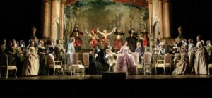 La escena final del ballet en el Acto III con Angela Gheorghiu como Adriana en primer plano de la producción del Royal Opera de ‘Adriana Lecouvreur’. Crédito: Catherine Ashmore / Royal Opera House / ArenaPAL.