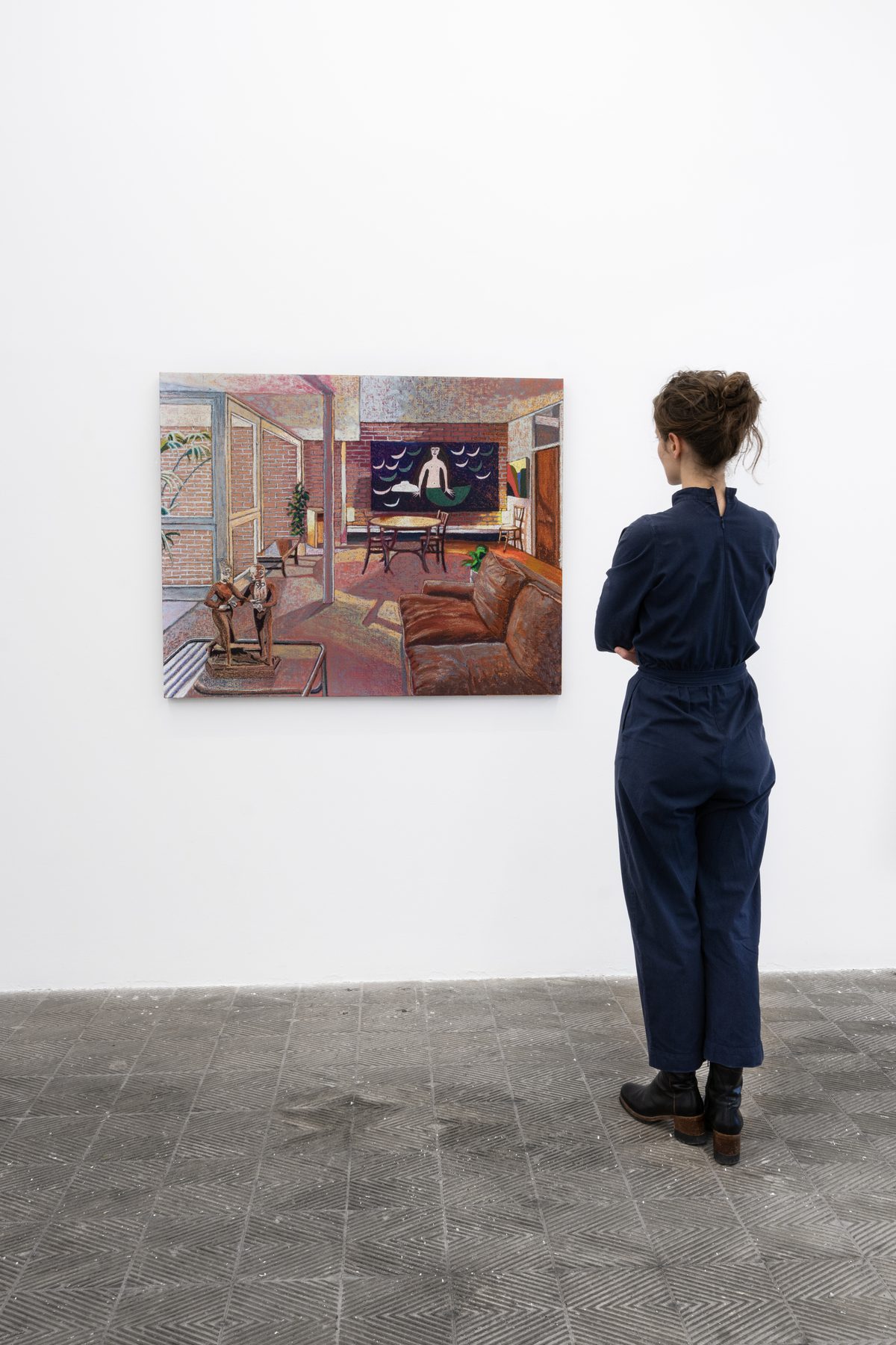 El título de la exposición hace referencia al color, un elemento esencial en su obra, y en particular un amarillo que nos remite a la luz, la alegría, la calidez y la inteligencia. A medida que el espectador se adentra en sus interiores descubre el ‘jaune brillant’ y la luminosidad mediterránea que emana de sus pinturas. Manford sueña sus espacios. Sus casas están en parte inspiradas en la realidad –una foto, una película, un diseño Mid century…– y en parte inventadas.