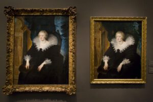 'Ana de Austria, reina de Francia'. Pedro Pablo Rubens. Óleo sobre lienzo h. 1622 Madrid, Museo Nacional del Prado. Ana de Austria, reina de Francia. Taller de Pedro Pablo Rubens. Óleo sobre lienzo. h. 1622-25 Viena, colección particular. Foto: © Luis Domingo.