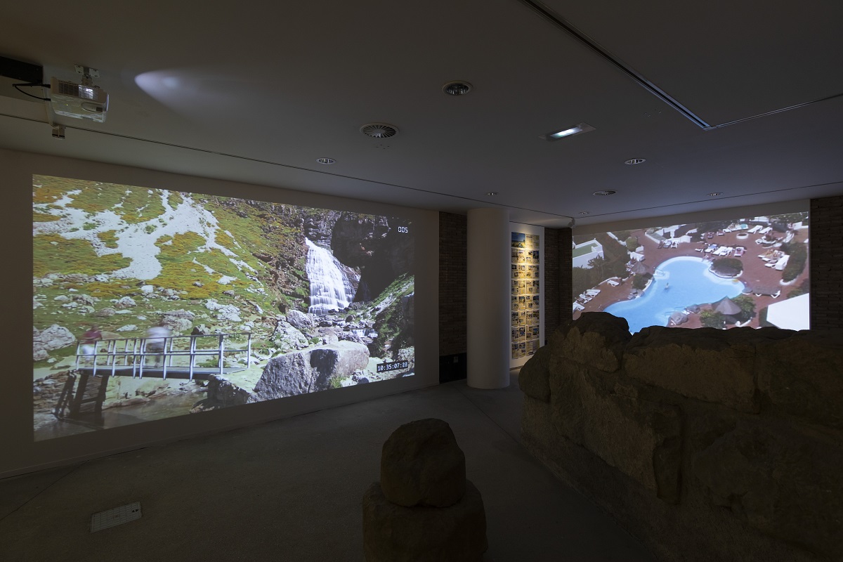 La muestra, comisariada por Pedro Vicente, muestra obras de siete artistas contemporáneos, Perejaume, Oriol Vilanova, Corinne Vionnet, Sascha Pohle, Albert Gusi, Lucien Briet y Eduardo Nave, que dialogan con diferentes materiales promocionales turísticos y de archivo, como las colecciones de fotografía estereoscópica “El Turismo Práctico” y “Rellev”, una serie de anuncios realizados por Kodak llamados Coloramas, carteles del Centro de Documentación Turística de España que fueron usados para promocionar nuestro país con imágenes de Huesca o la colección de postales “Same Sky Postcards”.