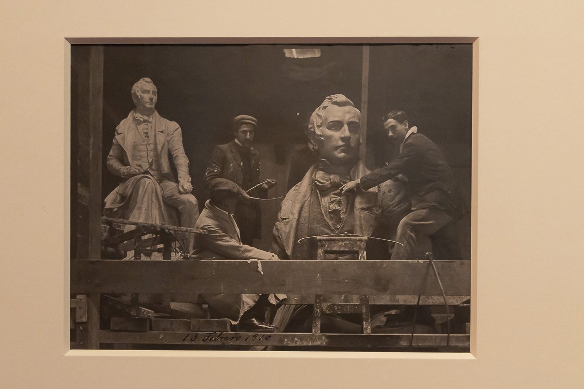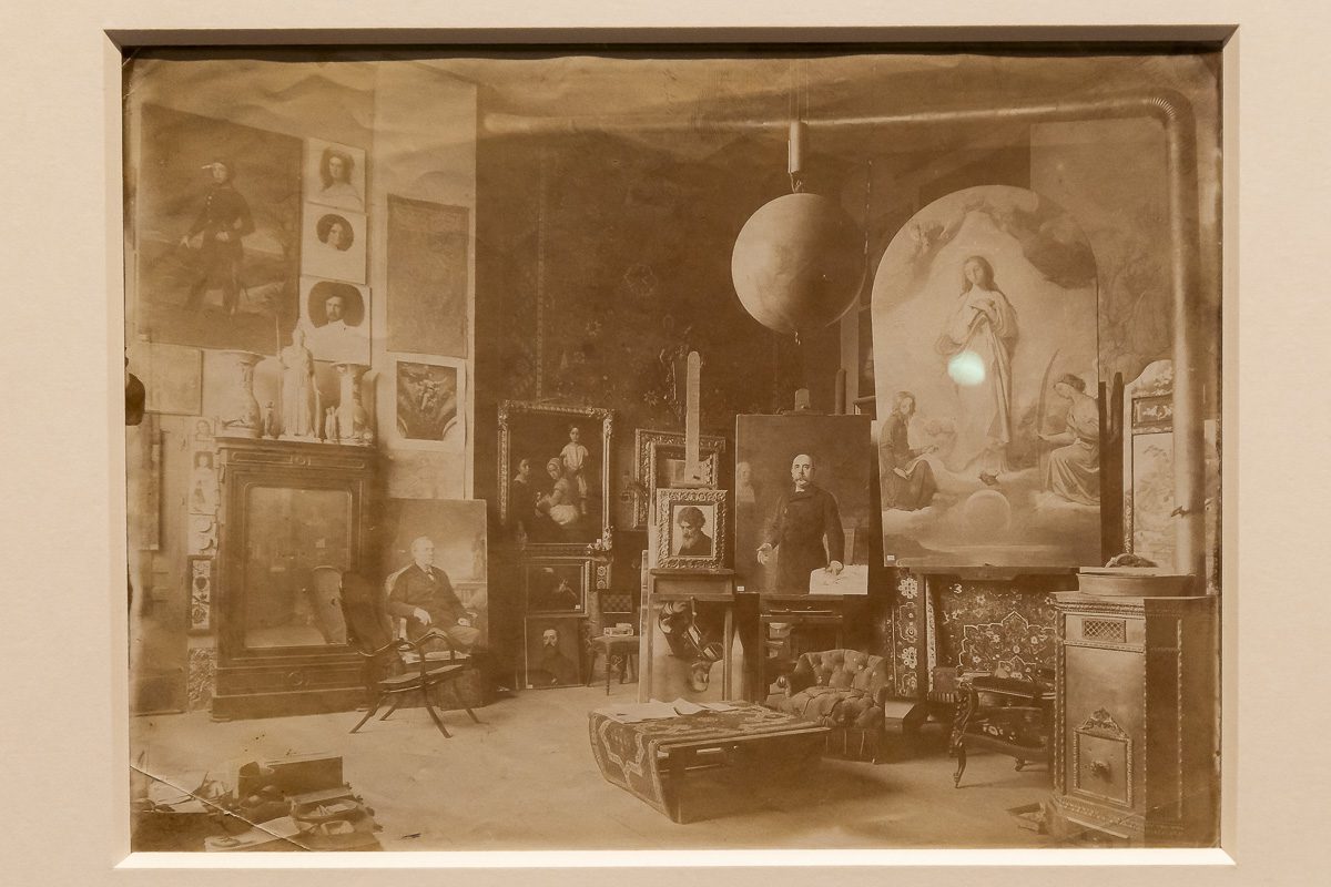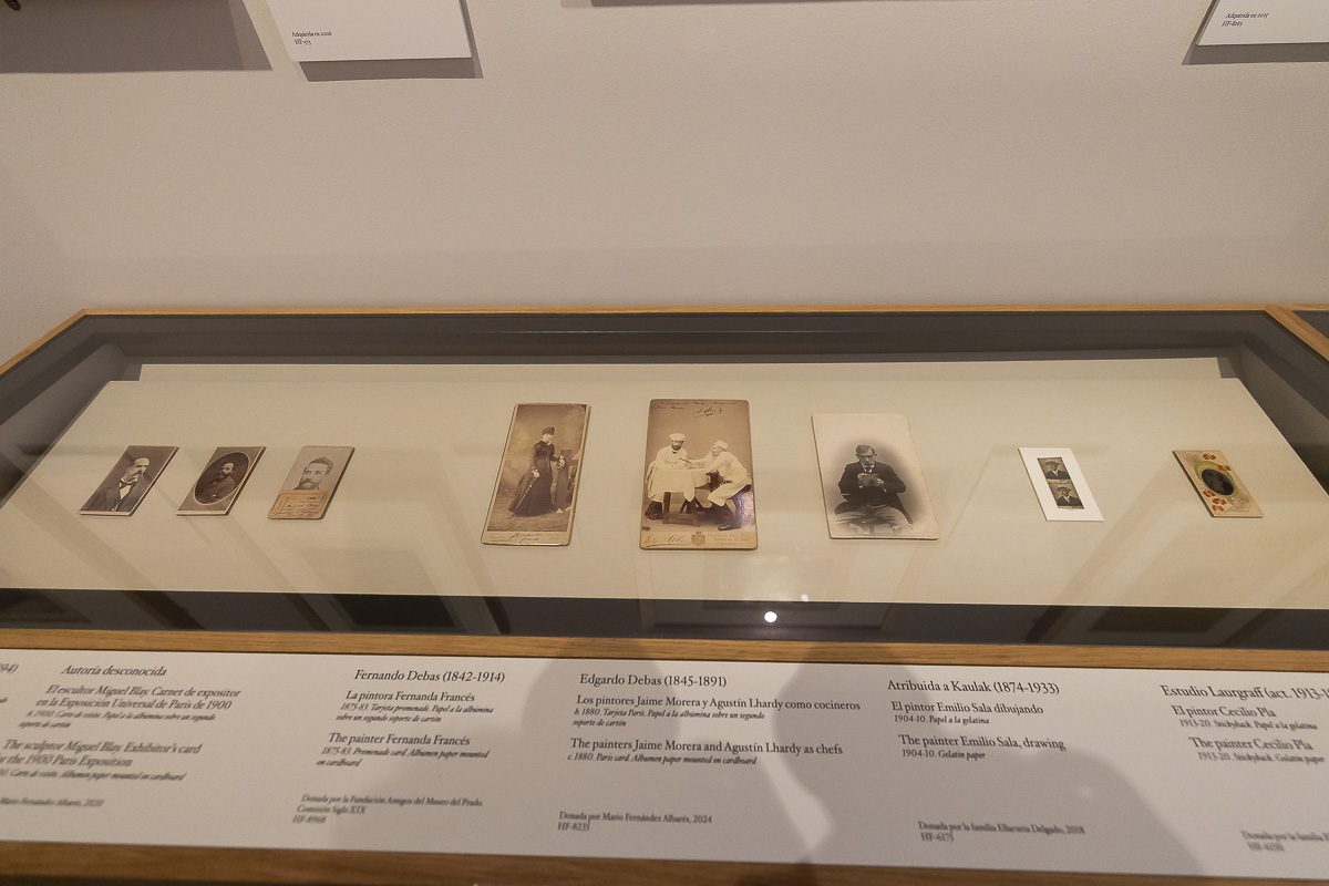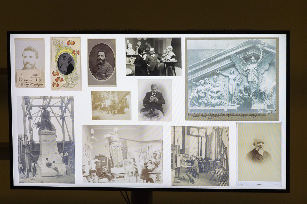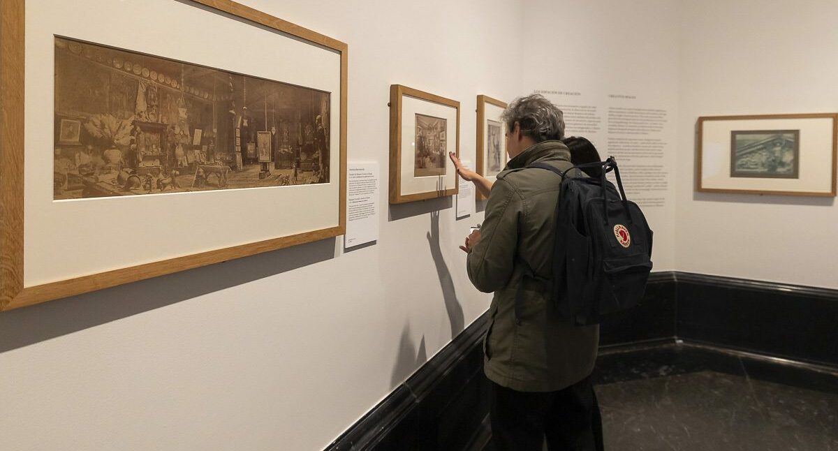 El recorrido destaca, entre otras, la vista del estudio de Federico de Madrazo en Madrid (Alfonso Roswag, 1893), la documentación del modelado del frontón de la Biblioteca Nacional por Agustín Querol (atribuida al Conde de Polentinos, 1902) y la escena de Mariano Benlliure junto al escritor Federico García Sanchiz en el taller del escultor (Cristóbal Portillo, 1932).