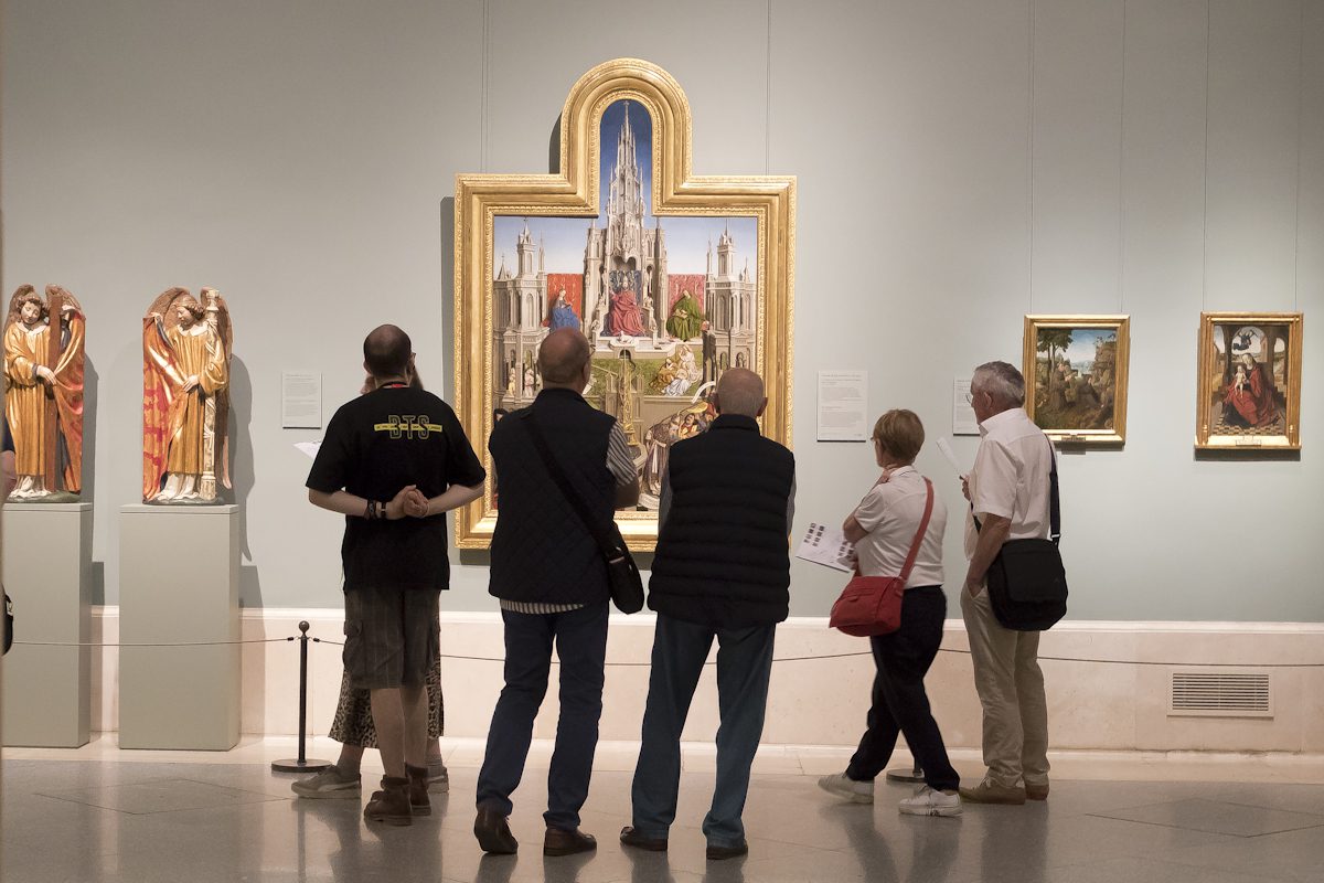 Junto al Retablo de los Gozos de santa María, obra maestra de Jorge Inglés depositada en el Museo en 2011 por Íñigo de Arteaga y Martín, XIX duque del Infantado, se reúnen de manera excepcional, ya que se encuentran en colecciones particulares, otras cuatro obras de este mismo autor que confirman el protagonismo del marqués en la asimilación en Castilla de nuevas fórmulas pictóricas de inspiración flamenca, como son el San Jorge y el dragón, que por primera vez se exhibe en España desde su adquisición por parte de la Leiden Collection de Nueva York, y tres tablas que formaron parte del retablo de la Virgen en Villasandino (Burgos).