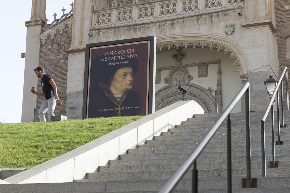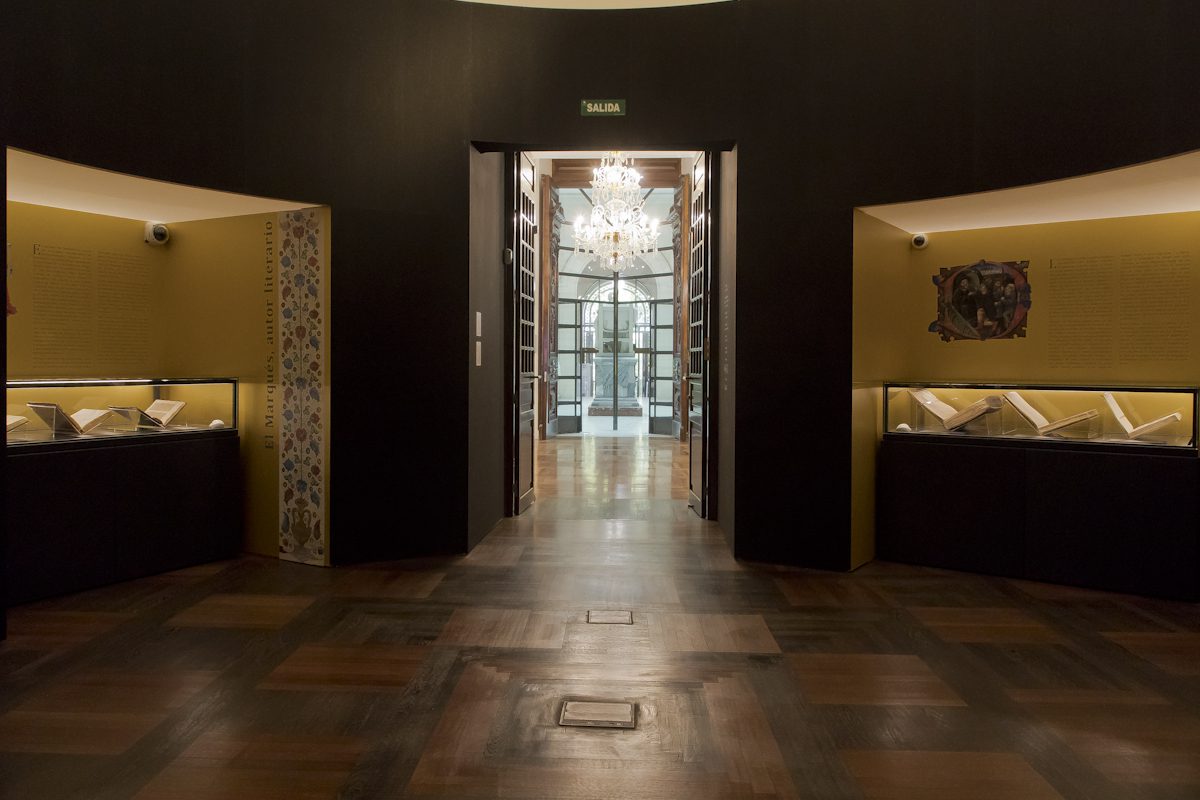 En el Prado, la exposición, ubicada en la sala 57 A del edificio Villanueva, pone de manifiesto el protagonismo de este noble como innovador promotor artístico a través de una selección de manuscritos y pinturas singulares. Y en la Biblioteca Nacional de España, la muestra, ubicada en la antesala del Salón de Lectura María Moliner y comisariada por Isabel Ruiz de Elvira, directora del Departamento de Manuscritos, Incunables y Raros, se centra en el contenido de su biblioteca personal, exhibiendo una serie de piezas representativas de la tradición hispánica bajomedieval, las encuadernaciones, el humanismo italiano y las obras literarias escritas por López de Mendoza.