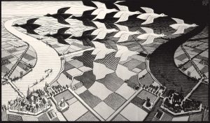 Maurits Cornelis Escher. Giorno e Notte, 1938.