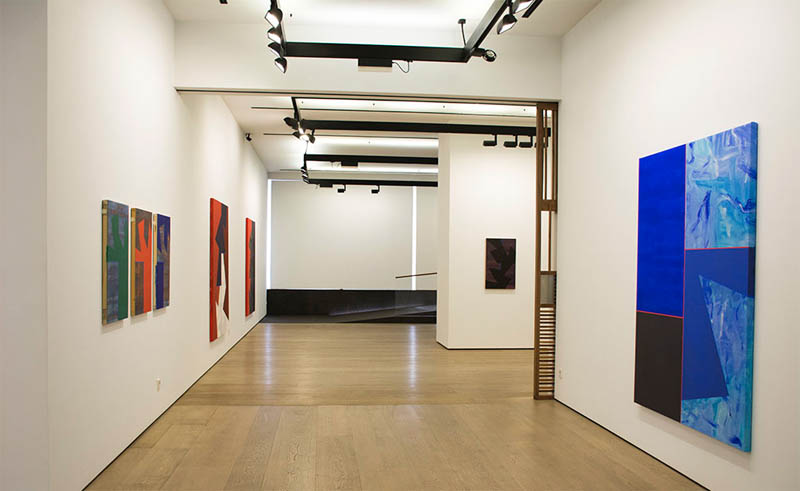 La muestra incluye una selección de pinturas realizadas con posterioridad a la mencionada retrospectiva. El recorrido de aquella finalizaba con la serie Nocturnos, Cristales rotos, basada en unos dibujos de 1995. Las pinturas se componían sobre un fondo informal de varios tonos de rojo sobre el que se trazaba una retícula conteniendo cada rectángulo formas angulares geométricas puntiagudas tratadas con un único color negro plano.