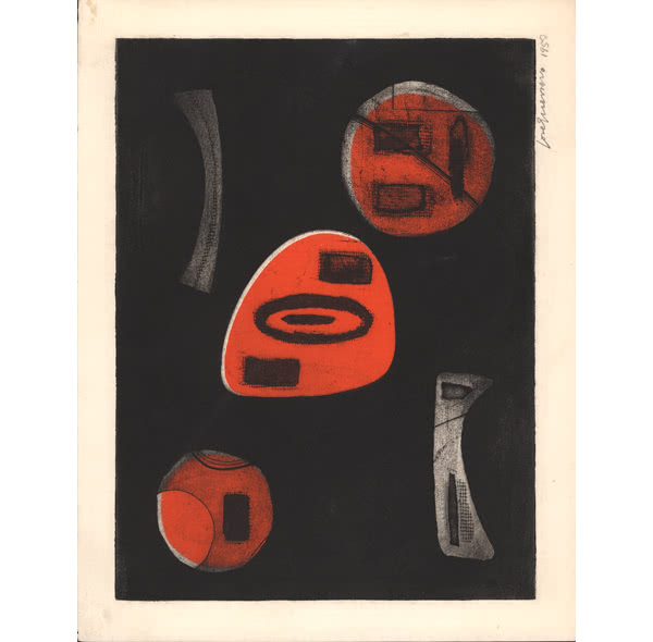 The presence of Black 1950-1966 está dividida en cinco secciones. La primera, La abstracción biomórfica, se centra los primeros trabajos que José Guerrero realiza tras su llegada a Estados Unidos, en noviembre de 1949, en el Atelier 17, en los que, además de aprender las técnicas del grabado, el pintor ensaya otros lenguajes para llevar hasta sus últimas consecuencias la evolución hacia la abstracción.