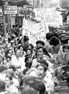 Alberto Bersoza. 'Madrid Activismos'. Manifestación contra la carestía de la vida en la calle Preciados, 1976. Fotografía anónima.