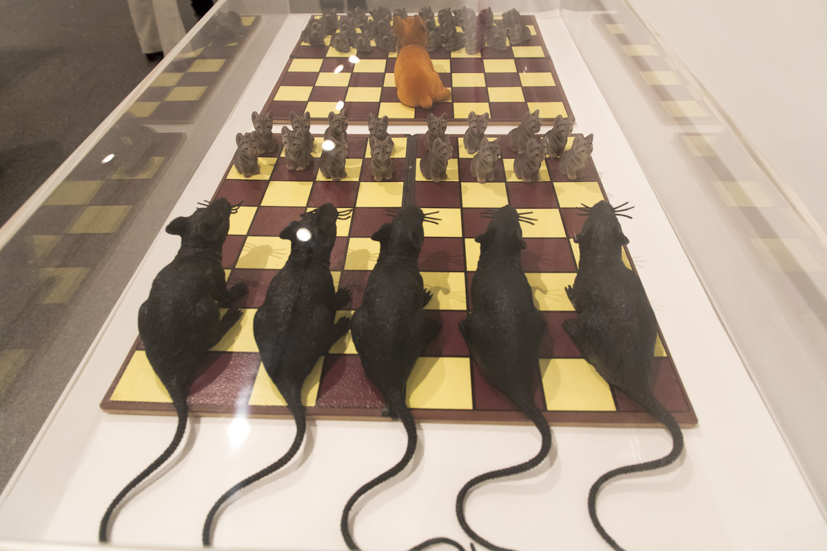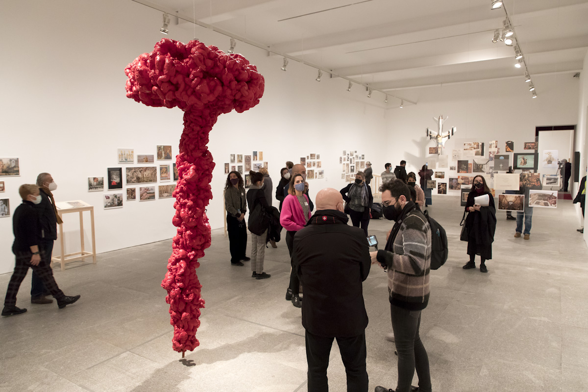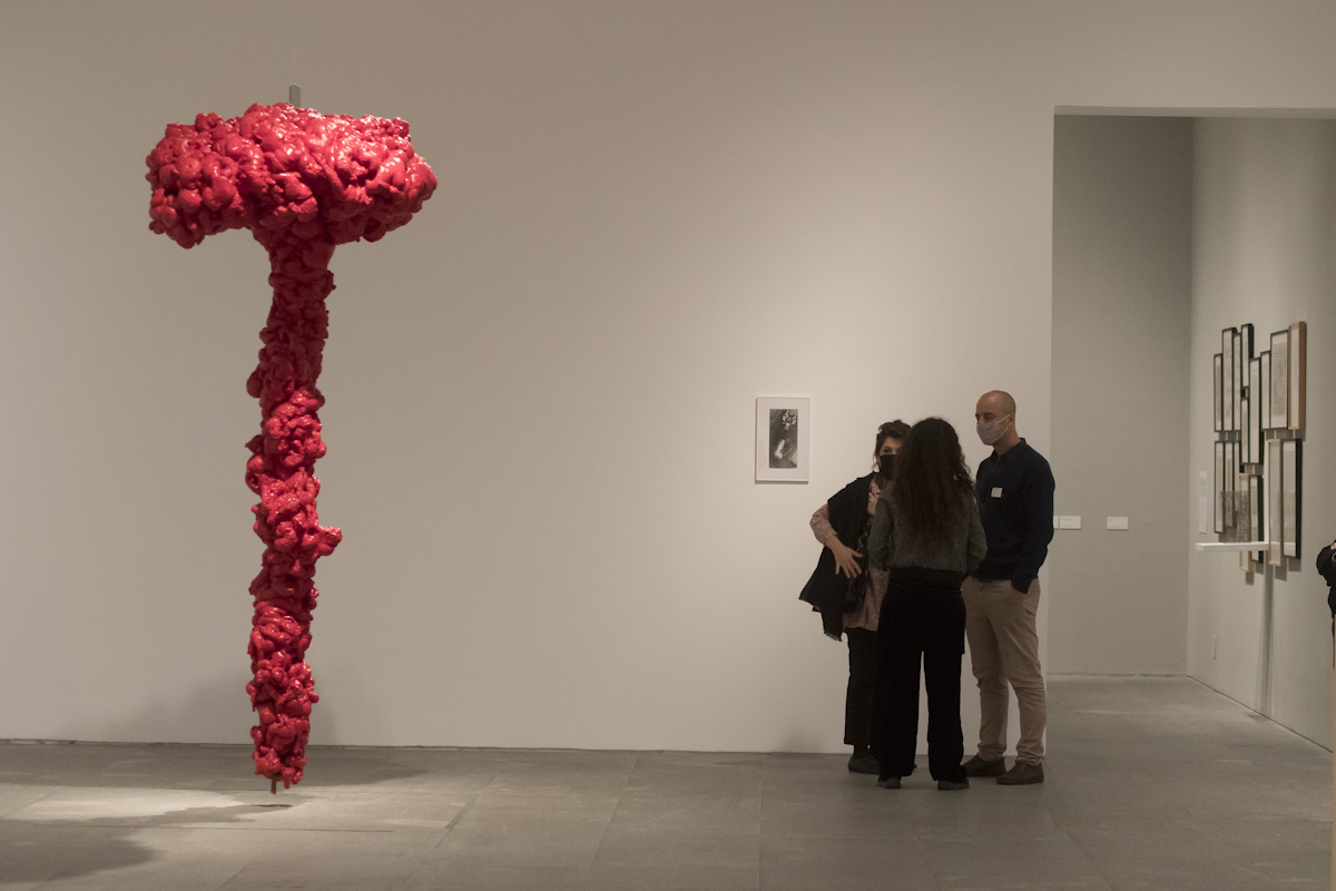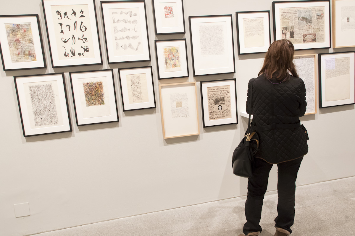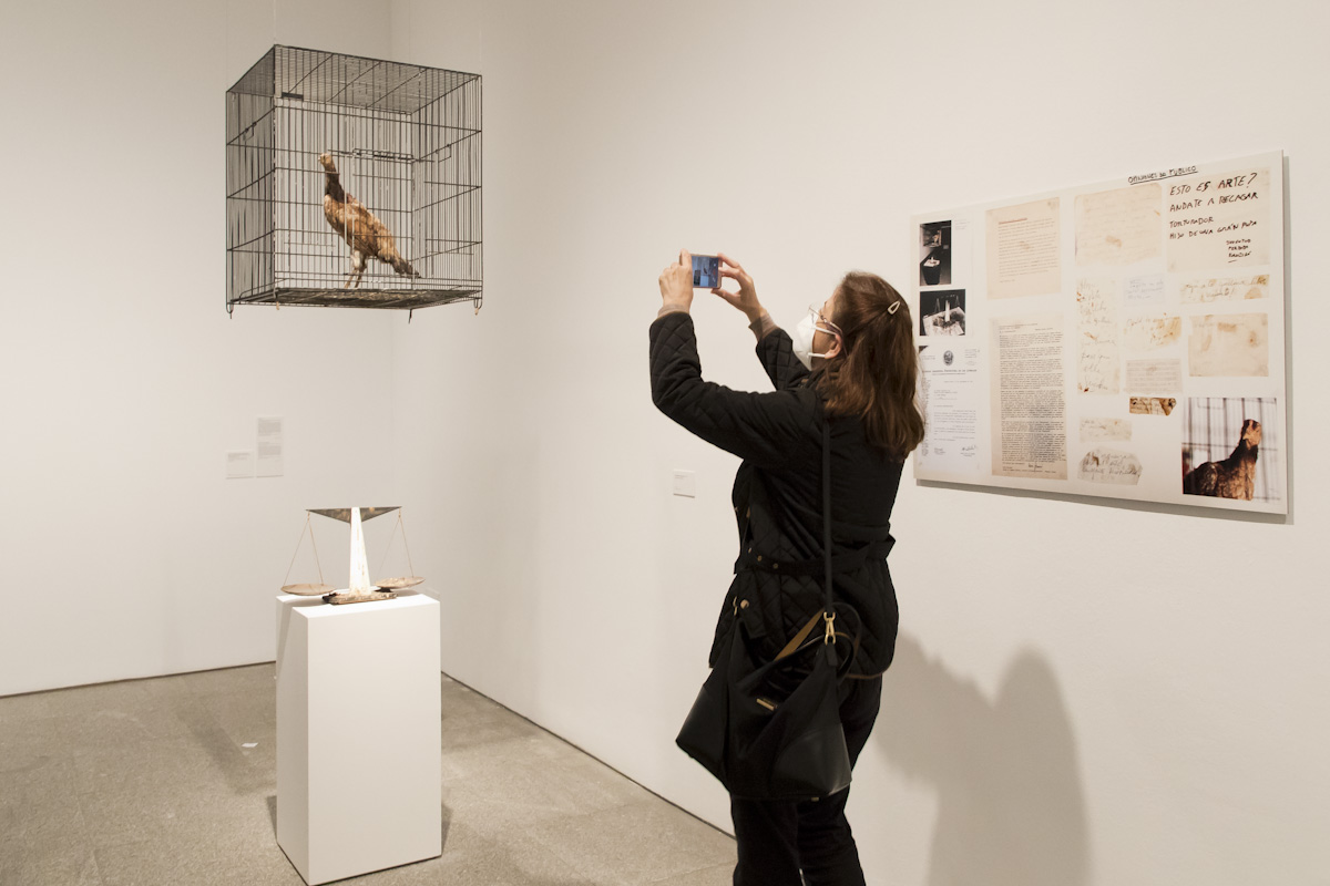 La bondadosa crueldad exhibe a lo largo de varias salas un enorme legado que va desde sus primeros dibujos, collages, acuarelas, esculturas o su vínculo con la escritura y la poesía, hasta la experimentación formal, lo poético, lo conceptual y lo político, e incluye las 15 obras originales y 219 copias únicas de objetos y series del artista donadas al Museo Reina Sofía por su familia. Entre ellas está uno de los Juicios finales de su serie Excrementos y la instalación La Justicia/V Centenario de la Conquista de América.