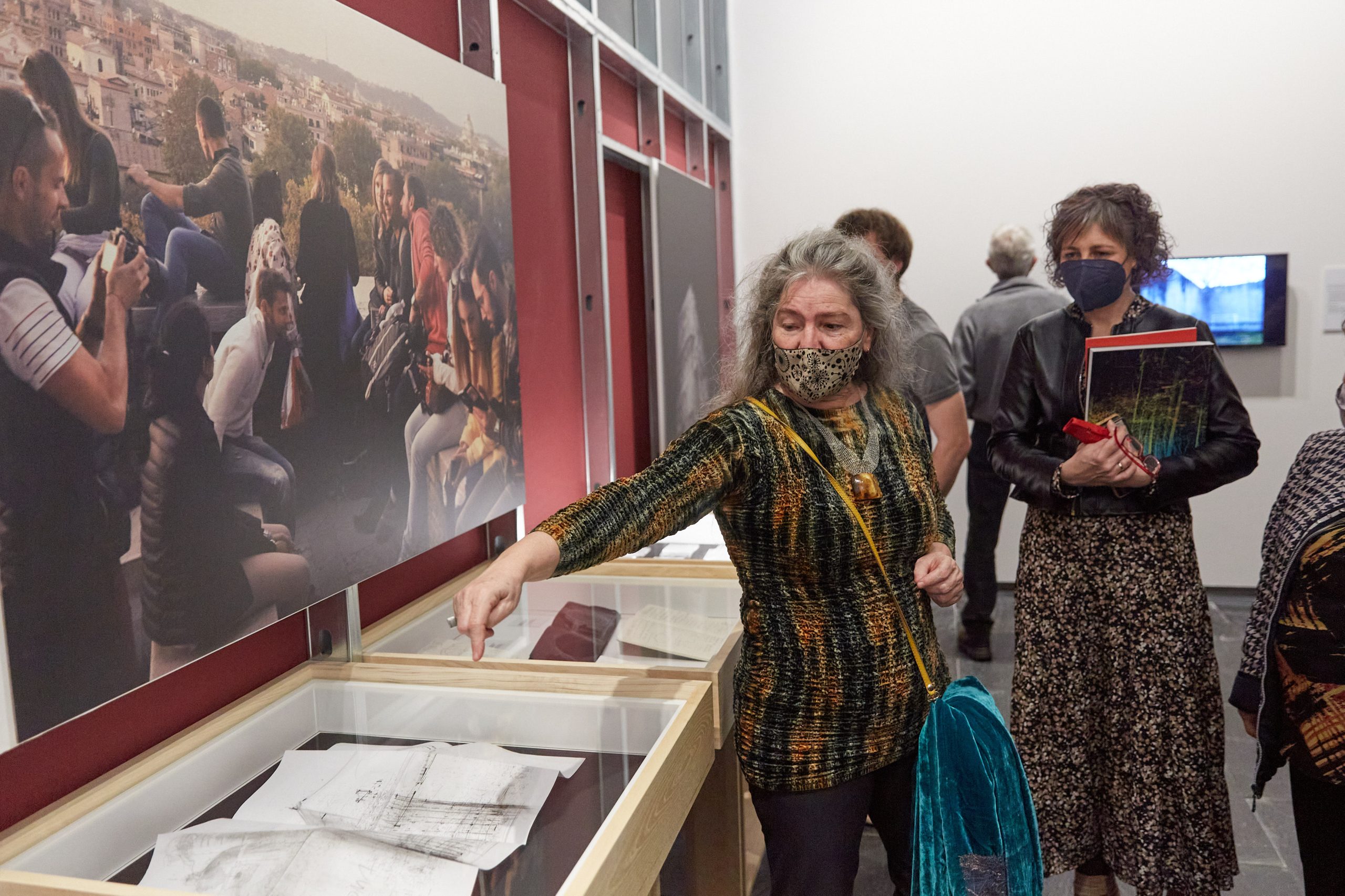 La museografía, realizada por Conjunta proyectos, supone una propuesta novedosa en el Museo de Navarra y responde al concepto de la exposición, ya que expresa la continuidad y la ruptura entre las diferentes técnicas, soportes y poéticas en juego. La forma de trabajar en capas y secuencias de imágenes de Villarreal se recrea en la estructura del montaje.