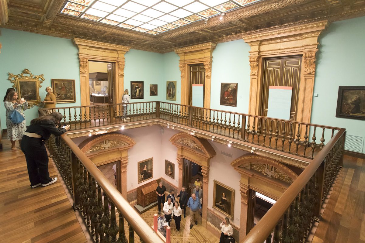 El recorrido de la muestra, a lo largo de las plantas baja, primera y segunda del Museo, se organiza en cinco capítulos temáticos -‘Retrato civil’, ‘Retrato religioso’, ‘Infancia de Jesús’, ‘Vida pública de Jesús’ e ‘Inmaculadas’- precedidos, en la sala Pardo Bazán, de un ‘Prefacio’ e ‘Índice’, así como de una aproximación a su trayectoria vital y un apartado dedicado a la conservación y restauración de su obra.