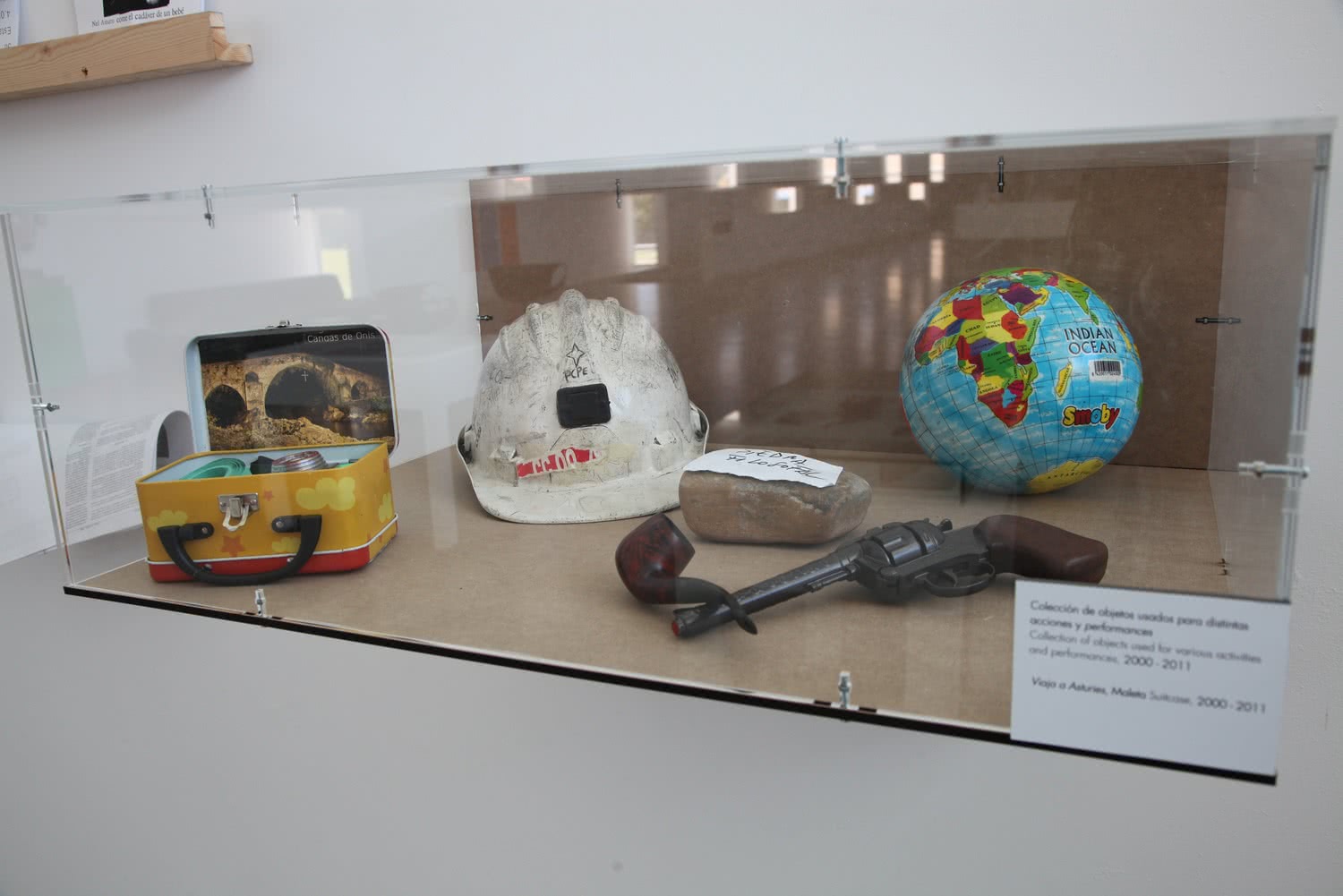 Acción Poética reúne distintos documentos y también obras de sus múltiples facetas como creador. Así, junto con una serie de objetos utilizados en distintas ,, como un casco o una pelota con forma de globo terráqueo, conviven varias series con obra gráfica muy cercanas al comic o, también, piezas más pictóricas que, a pesar de ir enmarcadas y colgadas a pared, presentan un carácter escultórico o instalativo.