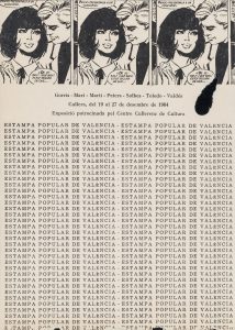 Ana Peters. Panfleto de la exposición de Estampa Popular de Valencia en el Salón de Actos de la Jefatura Local de la Falange en Cullera, Diciembre, 1964