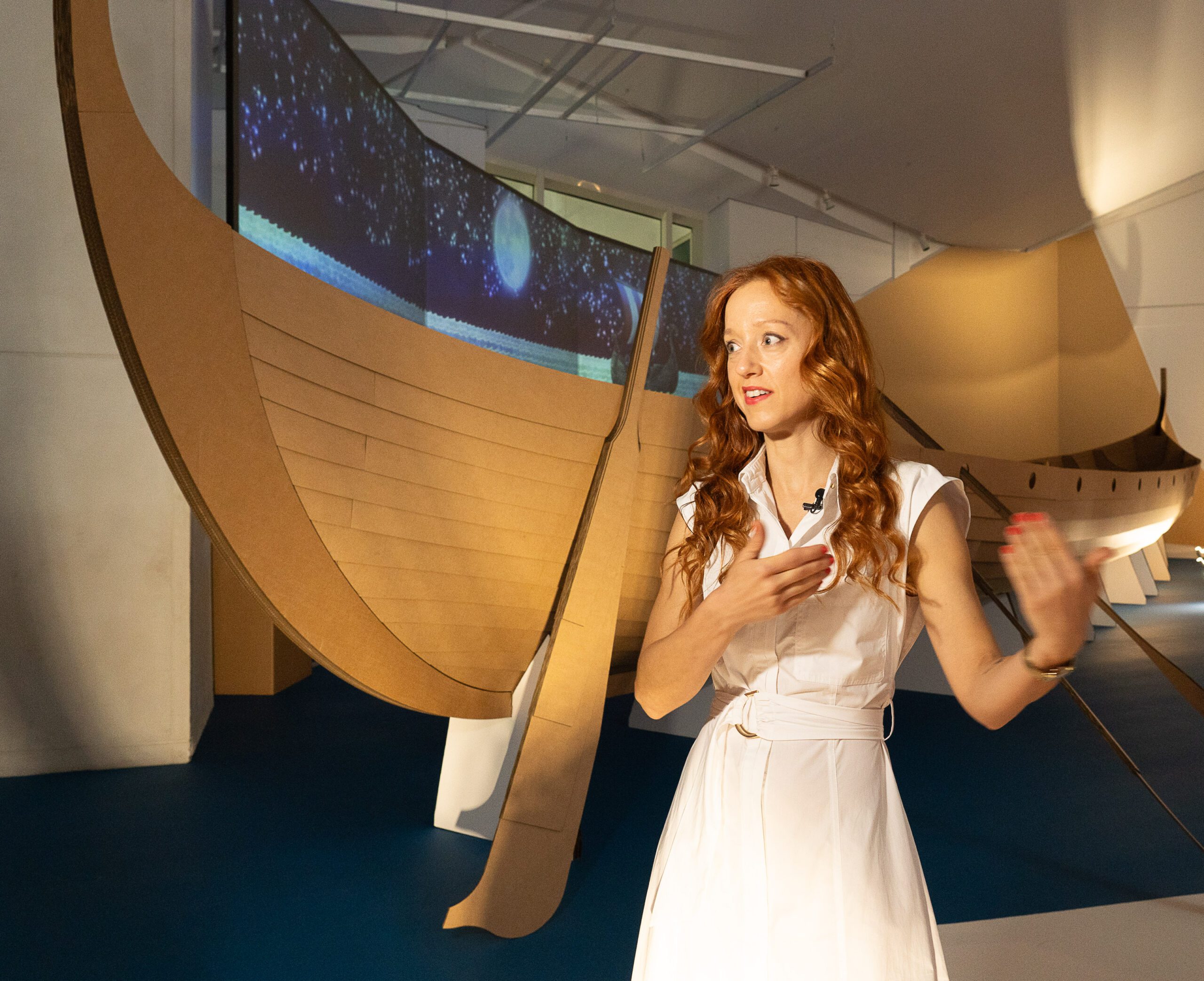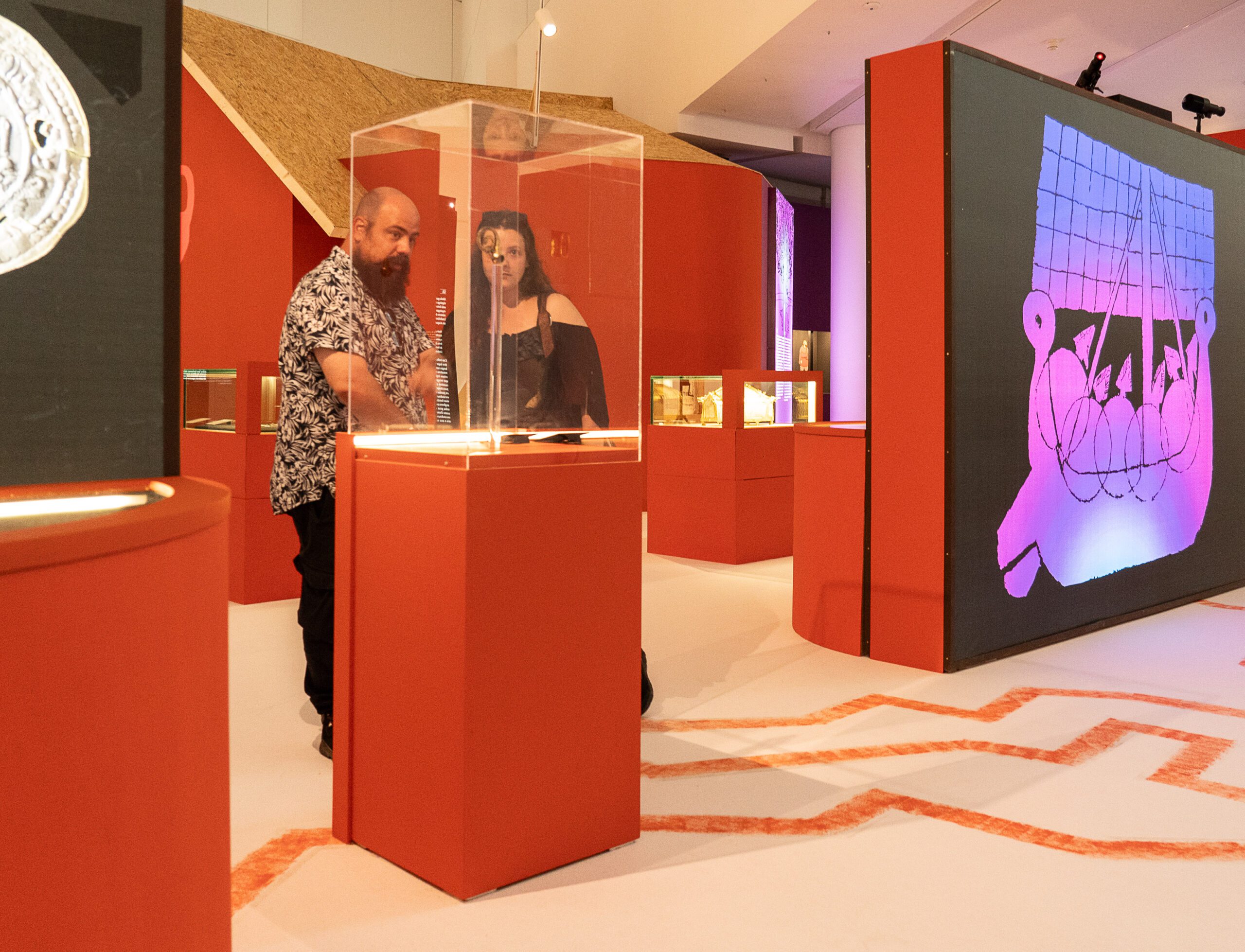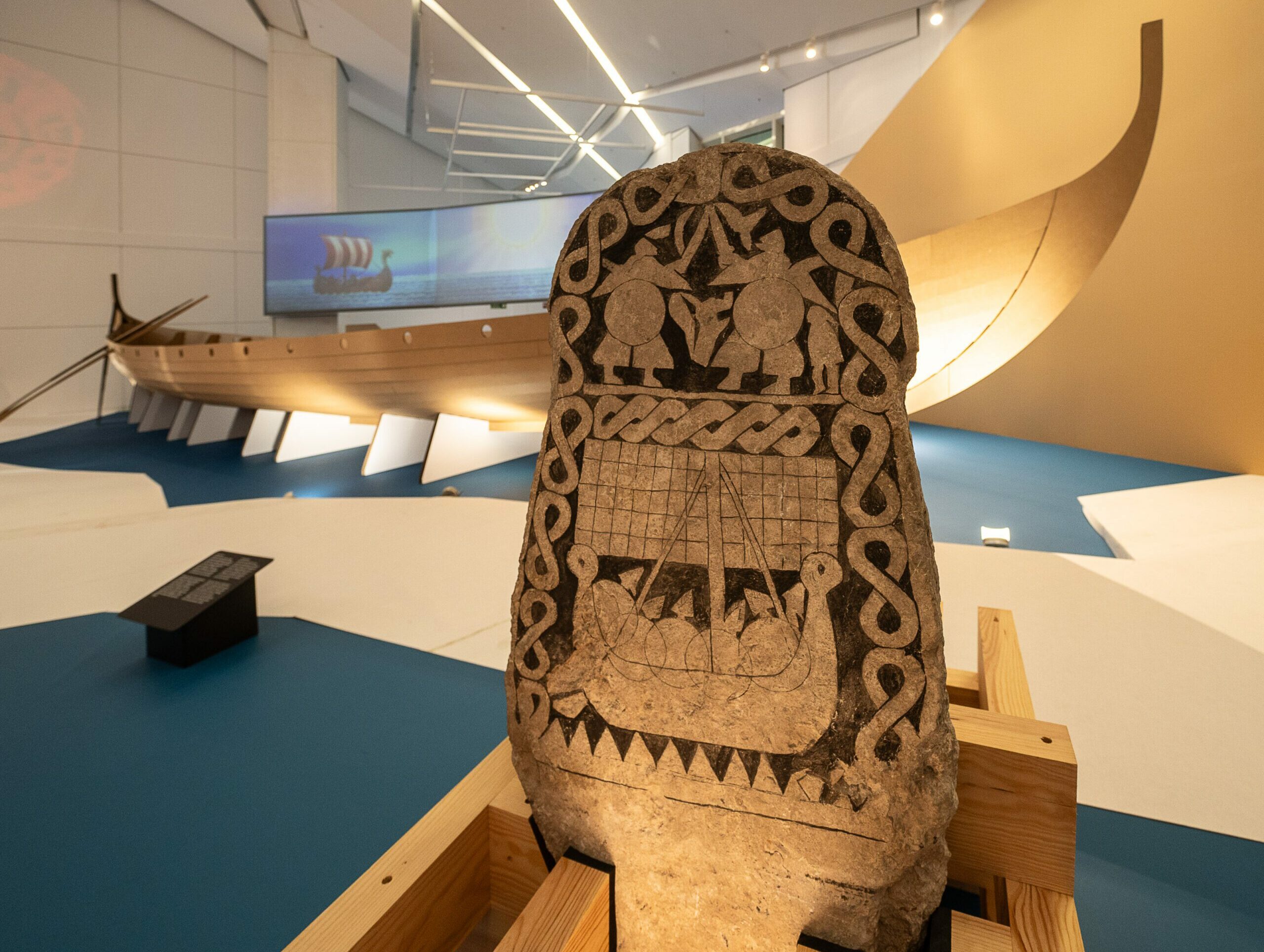 Exhibe también la recreación a tamaño real de una embarcación vikinga de más de 17 metros de longitud, diseñada por el estudio Cenlitros. Esta recreación está basada en el Skudelev 5, un barco real cuyos restos fueron recuperados en el fiordo de Roskilde, en Dinamarca, y que hoy se conserva en el Vikingeskibs Museet, el museo de barcos vikingos de esa ciudad danesa. Para su construcción –está formada por 584 piezas de cartón ensambladas manualmente– se contó con la asesoría del especialista del museo danés Tom Nicolajsen.