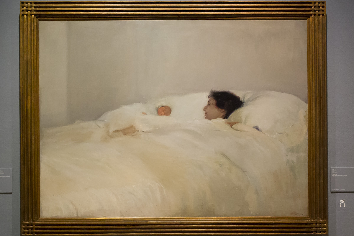 Ordenada a través de tres secciones –El centro de la familia, El mundo de los niños y La otra infancia– esta muestra incluye 41 lienzos y tres dibujos que ofrecen un panorama completo de la imagen del niño y su particular universo. Este acercamiento se inicia en el núcleo de la intimidad familiar, donde las maternidades acaparan todo el protagonismo, pasa por la representación de los propios hijos del pintor, abriéndose luego al ámbito infantil del estatus social, y culmina captando todo un mundo de faenas infantiles que no solo pasan por las esperadas del juego, el divertimento o el estudio de los niños de las clases más pudientes, sino también por el trabajo infantil o el desamparo de los pequeños de las clases más populares. Finalmente se aborda el reverso de la dicha, la enfermedad o la mortalidad infantil.