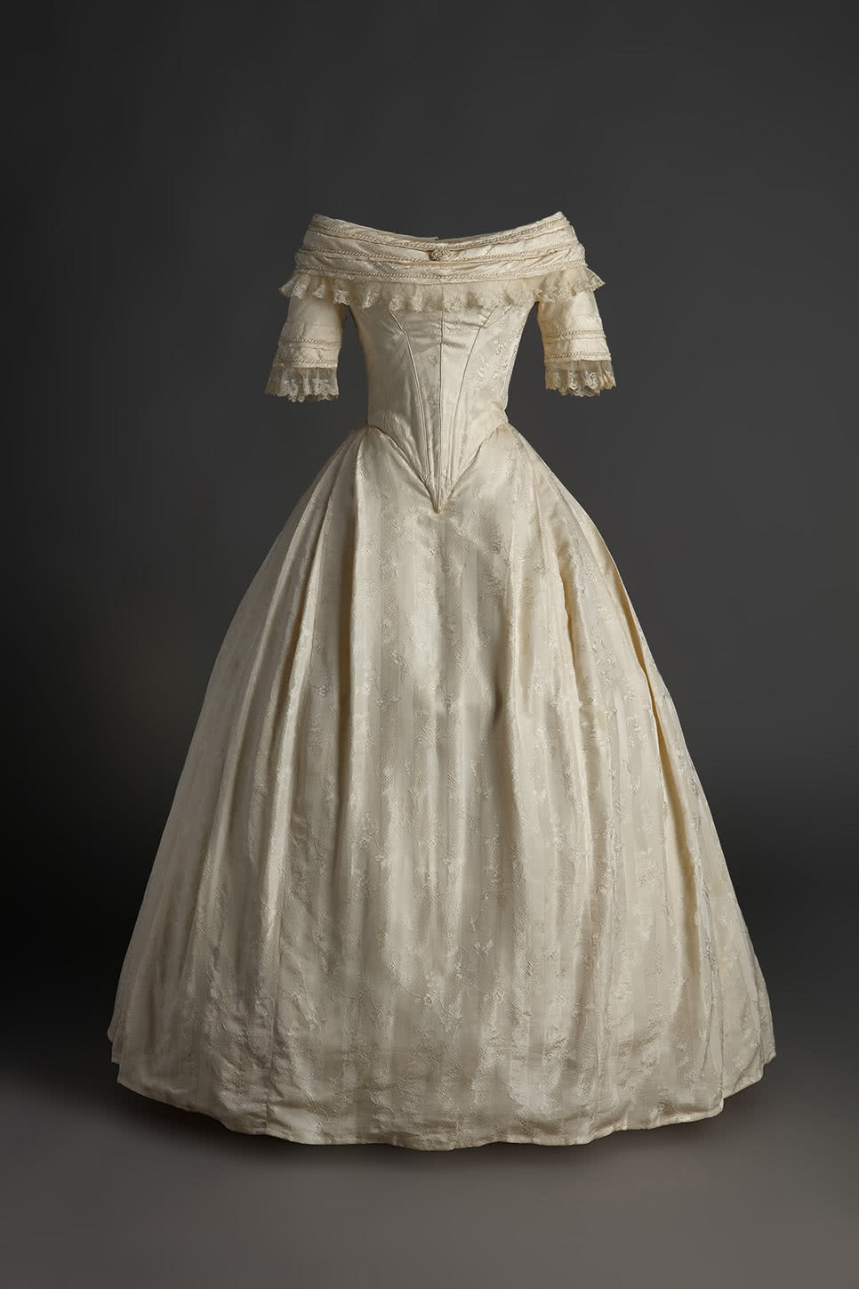 Vestido de novia en seda labrada con aplicación de encaje, 1840. Foto: Pablo Linés Viñuales.