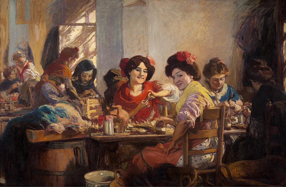 Junto a pinturas del costumbrismo andaluz figuran obras de Gonzalo Bilbao -un boceto de sus famosas Cigarreras-, Ramon Casas y Picasso, autor de las ilustraciones del libro Le Carmen des Carmen (1964). La muestra se completa con libretos y partituras del estreno de la ópera de Georges Bizet en formato de zarzuela en Madrid y Barcelona, en 1887 y 1890 respectivamente. El proyecto incluye también un ciclo de cine los sábados, del 11 de octubre al 8 de noviembre, en el que se proyectarán películas de Otto Preminger, Jean-Luc Godard o Carlos Saura, entre otros.