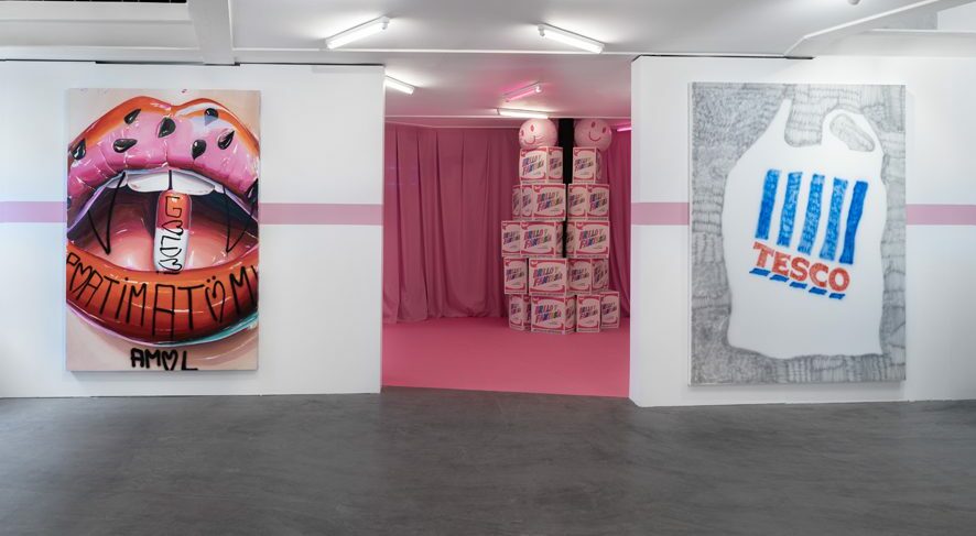 Una vez llenado el carro, empieza el ágape visual. La glotonería y la provocación en la obra de Ana Barriga (Jerez de la Frontera, 1984); la interpretación de Hannah Epstein (Halifax, Canadá, 1985) del cuento de Ricitos de Oro a través de la codicia y los hábitos de consumo occidentales, presentando a la protagonista como la última colonizadora blanca que consume los recursos de otros sin preocupación alguna; el sedentarismo digital, desperdicio y el análisis antropológico del presente en la obra de Nicolás Romero (Buenos Aires, 1985); los festines en cerámica de Lusesita (La Rioja, 1979) y de Laura Lagraña, Culitomaton (Barcelona, 1995); la ordinariez del consumismo y la informalidad de las marcas que nos rodean con Ricardo Passaporte (Lisboa, 1987); los excesos en el trabajo de Bieke Buckinx (Bruselas, 1988); el homenaje a los alimentos llegados de Latinoamérica en las icónicas mujeres de Fátima de Juan (1984, Palma); la reflexión sobre la tentación y la indulgencia del ser humano a través de nuestra relación con la Madre Tierra con Reihaneh Hosseini (Teherán, 1988), y la radiografía con toques surrealistas de la sobremesa de Francesc Rosselló (Palma, 1994).