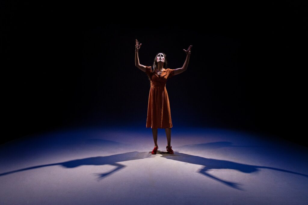 Ante nosotros aparece una actriz en medio de un lino blanco. A través de ella veremos mucho más. Veremos, por ejemplo, un gusano que sale de una manzana o las profundidades de un río turbulento azotado por una tormenta eléctrica. En cada representación damos fe de que el público ve lo que el personaje ve. Y esto se produce de forma directa, bella, imprevista y epifánica para todos.
