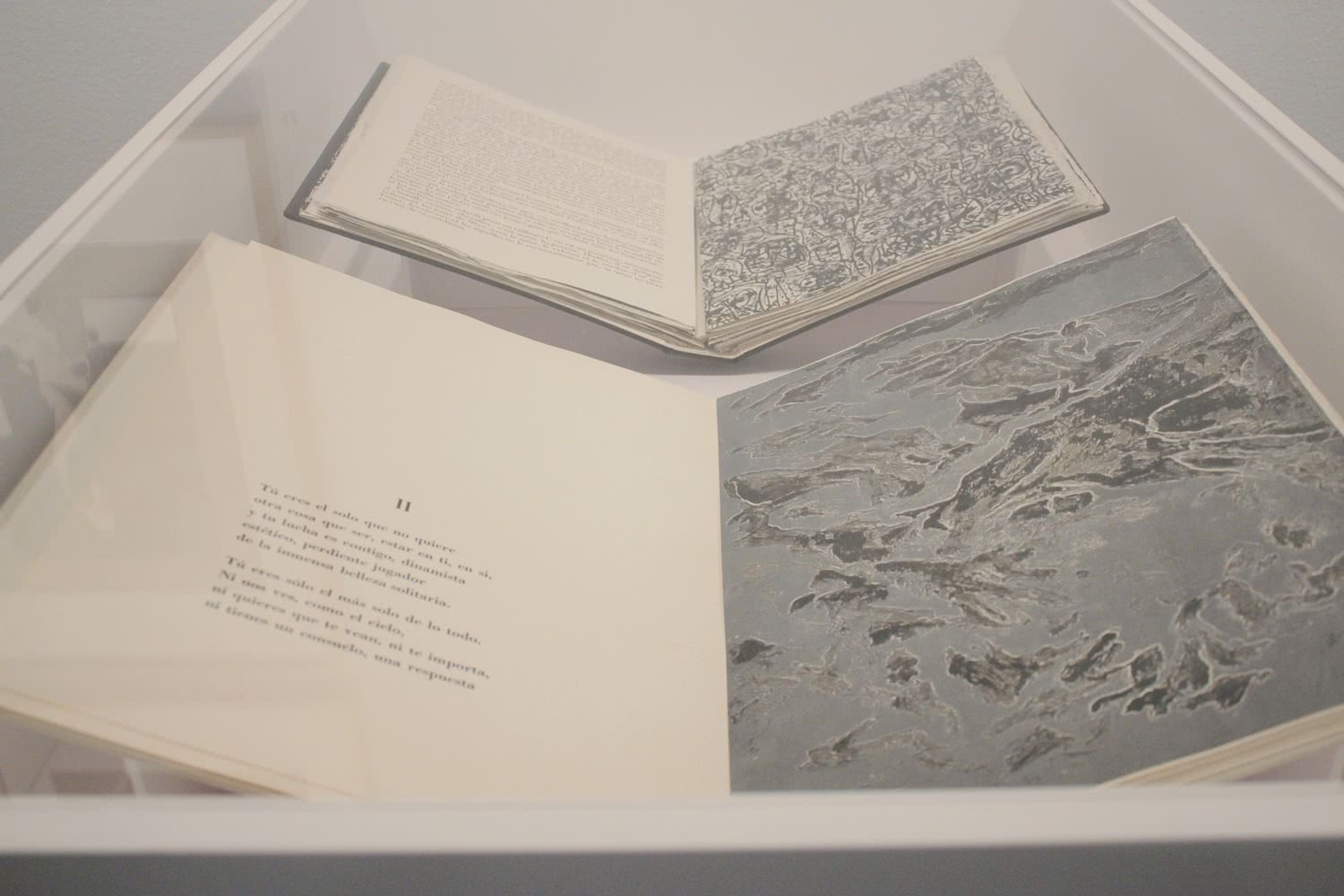 Además mezcla ejemplares representativos de las colaboraciones entre artistas plásticos y poetas, como Novel.la, de Joan Brossa y Antoni Tàpies (Sala Gaspar, Barcelona, 1965) o Mutilados de paz, de Rafael Alberti y Manuel Millares (Madrid, 1965).