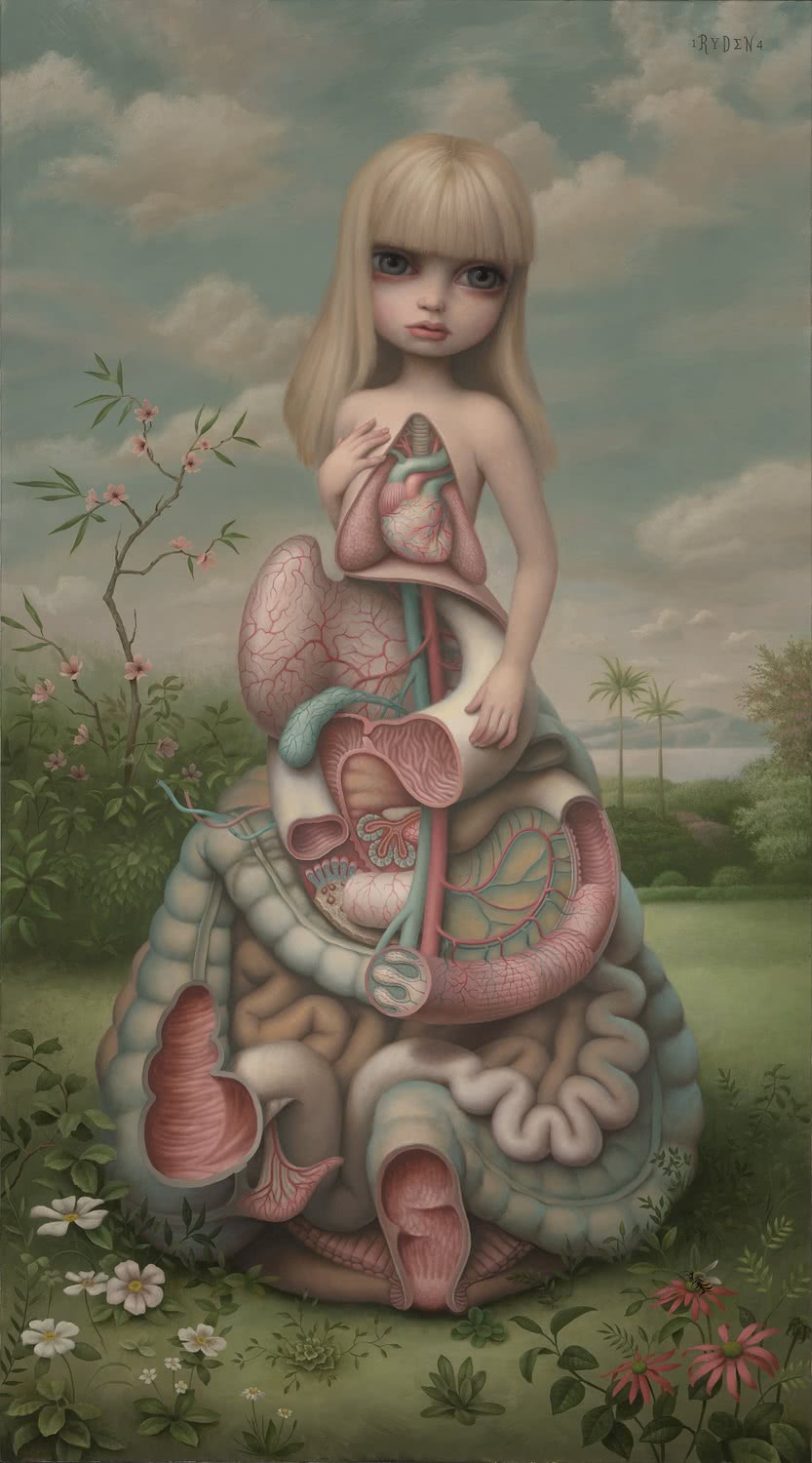 Mark Ryden se graduó en 1987 en el Art Center College of Design de Pasadena y dedicó su producción inicial al diseño comercial. En esa época realizó dibujos para varias portadas de discos, por ejemplo para Red Hot Chili Peppers (On Hot Minute) o Aerosmith (Love in an Elevator), además de Dangerous de Michael Jackson. En 1998 expuso por primera vez de manera individual en la Mendelhall Gallery de Pasadena con una muestra titulada The Meat Show. Desde entonces su carrera artística se ha desarrollado de forma imparable y ya destacan en su trayectoria importantes muestras individuales y colectivas en centros de todo el mundo, como la galería Paul Kasmin de Nueva York, Michel Kohn Gallery de Los Ángeles, la Tomio Kamaya Gallery de Tokio, el Frye Art Museum de Seattle o el Museum of Contemporary Art de Los Ángeles, MOCA. En la primavera de 2017, sus diseños para los sets y el vestuario de la obra Whipped Cream (una producción del American Ballet Theatre) podrán disfrutarse en la Ópera Metropolitana de Nueva York.Universo melancólico