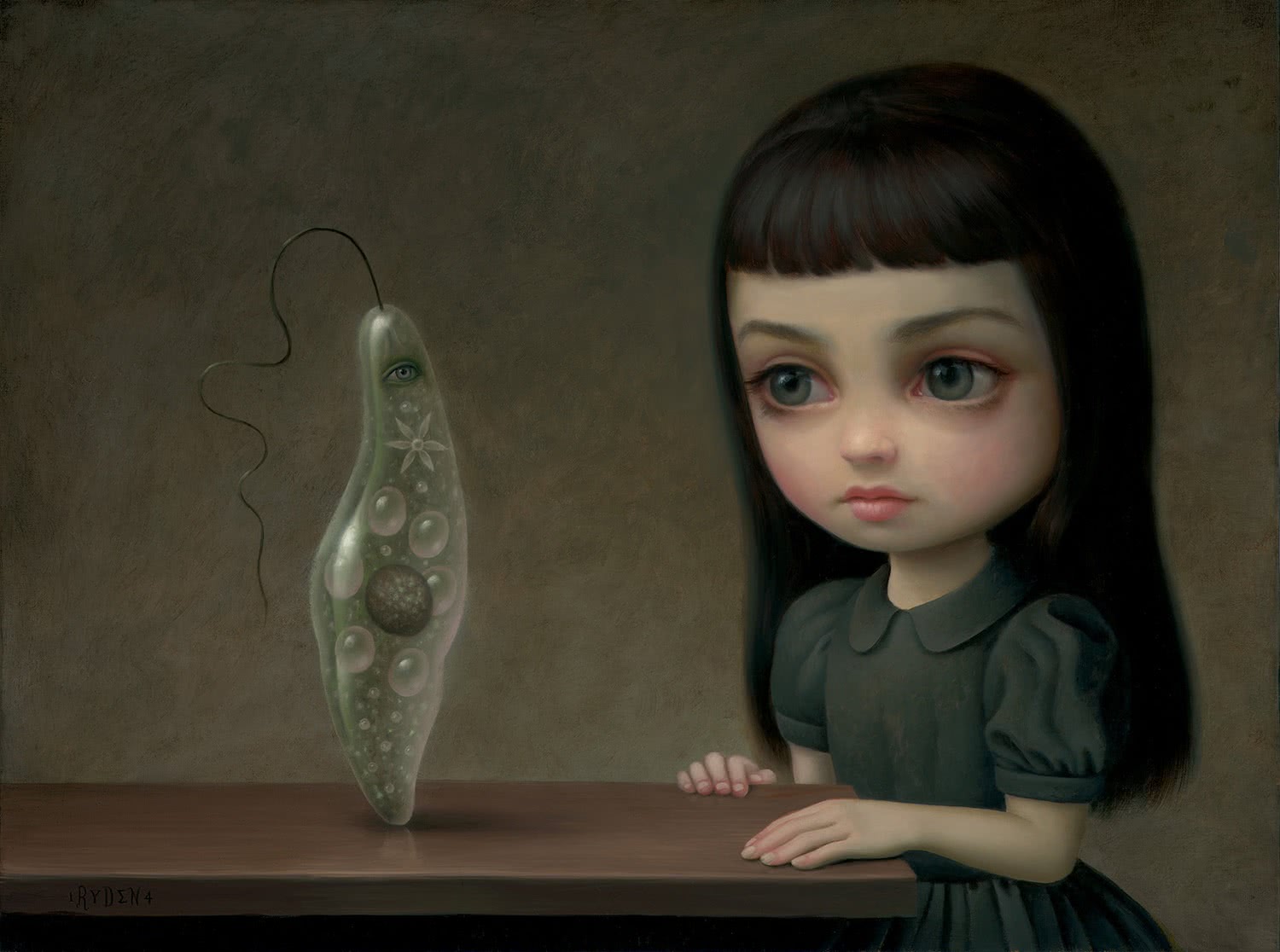 La obra del artista oscila entre lo críptico y lo bello, trazando una delgada línea entre lo melancólico y lo perturbador. El mundo de Ryden es un lugar impregnado de dulce nostalgia y teñido de oscuridad, donde complejos elementos psíquicos se esconden bajo la superficie de clichés culturales. “Creo en dejar que la imaginación prospere en mi arte. No le temo a la nostalgia ni al sentimiento. Valoro el tomarse tiempo para hacer que una pintura sea ‘bonita’. Quiero darles vida”, explica.