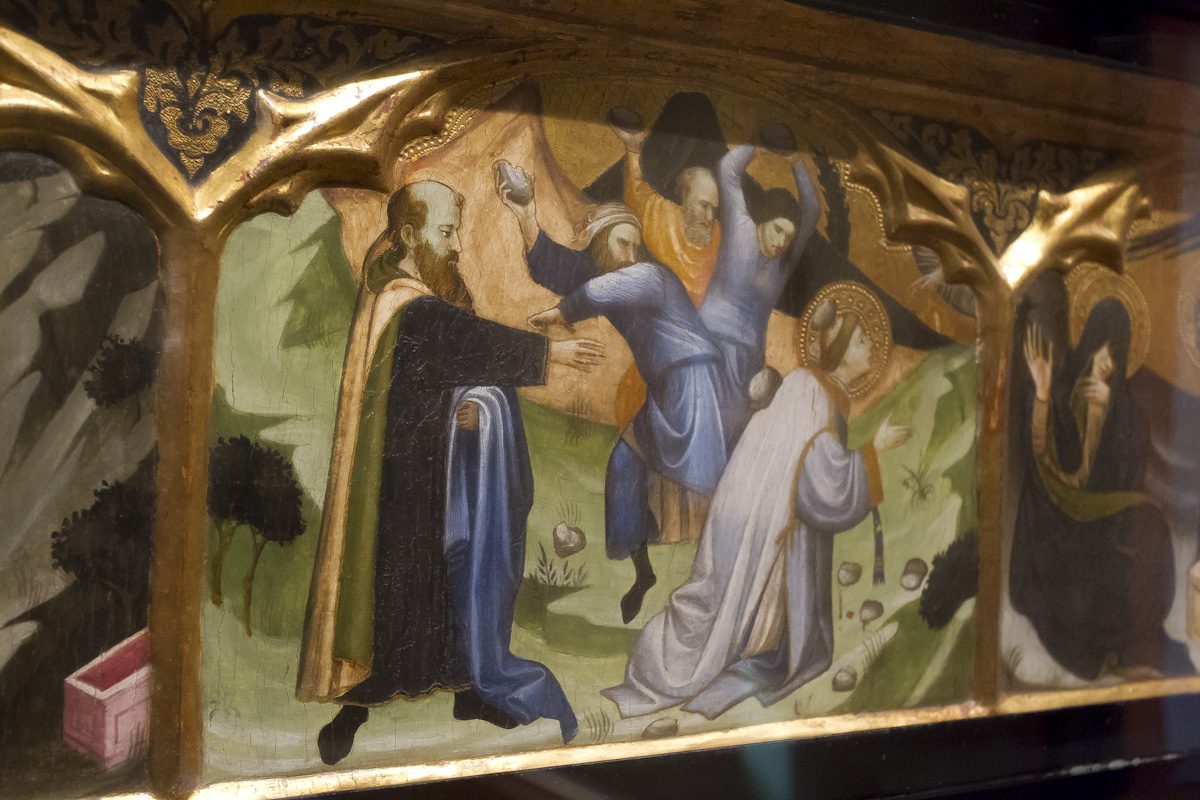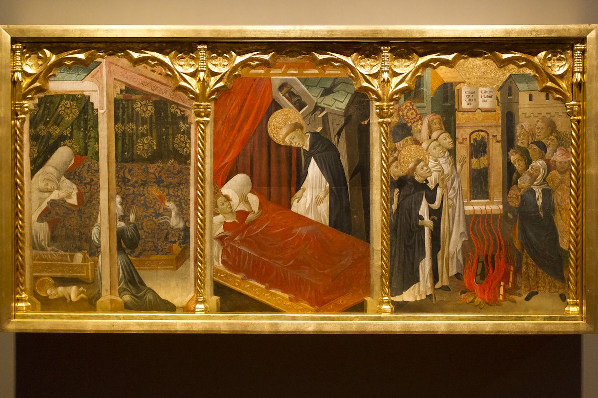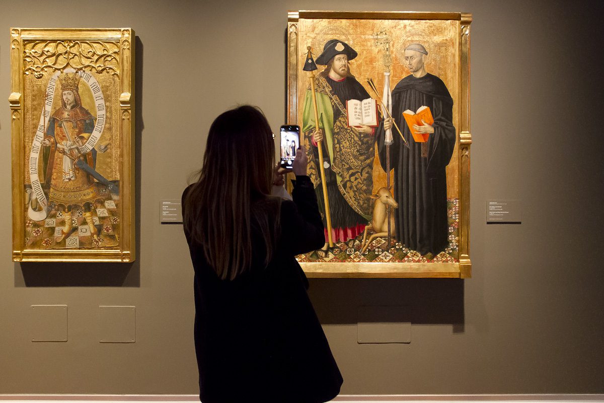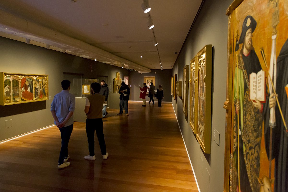 El despegue económico y cultural de Valencia a finales del siglo XIV propició la presencia en la ciudad del pintor florentino Gherardo Starnina y la del centroeuropeo Andrés Marçal de Sas. Al mismo tiempo, maestros locales como Peris, Alcanyís o Nicolau se convirtieron en difusores del gótico internacional. La exposición da cuenta de ello con obras tan destacadas como el Retablo de los Siete Sacramentos o Retablo de fray Bonifacio Ferrer (1396-1397), en el que Starnina muestra el refinamiento de su formación en Florencia, o la obra bifaz Verónica de la Virgen y Anunciación (1403-1410), una pieza devocional que Peris y Nicolau tratan con el preciosismo de un objeto de orfebrería.