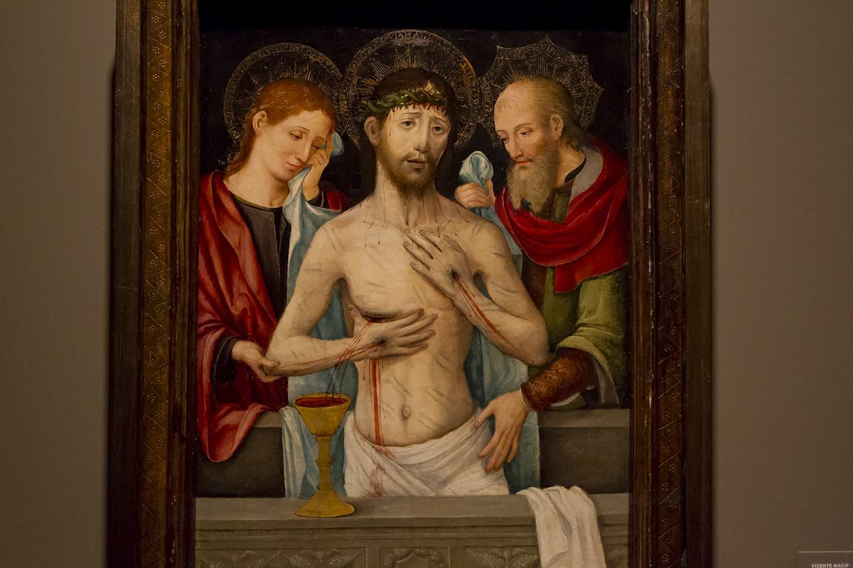 En Valencia coexistieron las obras de Bartolomé Bermejo con las del italiano Paolo de San Leocadio, considerado el introductor del Renacimiento de Italia en la ciudad y de quien se expone su Cristo portacruz (h 1500-1505), y las de otros artistas como Fernando Llanos, Fernando Yáñez de la Almedina o el Bosco, cuyo Tríptico de la Pasión o de los improperios (h. 1510-1520), una de las obras maestras del Museo, llegó a Valencia de la mano de Mencía de Mendoza y está representado en la exposición por su tabla central, la Coronación de espinas.