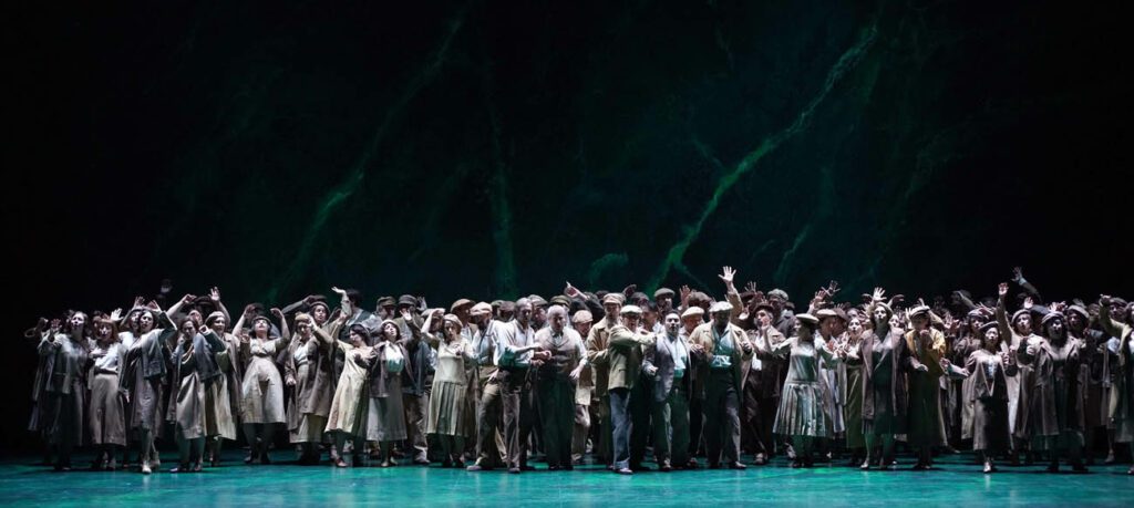 En Nabucco, el coro ocupa un papel primordial, por no decir el más destacado, tanto del punto de vista estructural como dramatúrgico. El del Teatro Real, preparado por su director Andrés Máspero, entona el célebre Coro de los esclavos, Va pensiero, dando voz una vez más a los oprimidos del mundo.