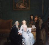 La representación de lo cotidiano cobró impulso entre los artistas de la época, bien para reflejar el transcurrir de la gente humilde, bien para mostrar el juego social y amoroso que se producía en las estancias palaciegas. Son las escenas de galanteo, el teatro de las pasiones relatado con un realismo dulcificado que se asocia a la estética del Rococó. Las conexiones con Francia y sus cortes afines se convirtieron en una vía de entrada de esta nueva sensibilidad.