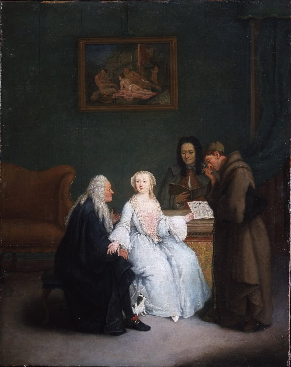 La representación de lo cotidiano cobró impulso entre los artistas de la época, bien para reflejar el transcurrir de la gente humilde, bien para mostrar el juego social y amoroso que se producía en las estancias palaciegas. Son las escenas de galanteo, el teatro de las pasiones relatado con un realismo dulcificado que se asocia a la estética del Rococó. Las conexiones con Francia y sus cortes afines se convirtieron en una vía de entrada de esta nueva sensibilidad.