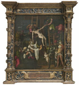 El Descendimiento de la Cruz, Machuca, Pedro. Óleo sobre tabla, 141 x 128 cm, 1547. Madrid, Museo Nacional del Prado.