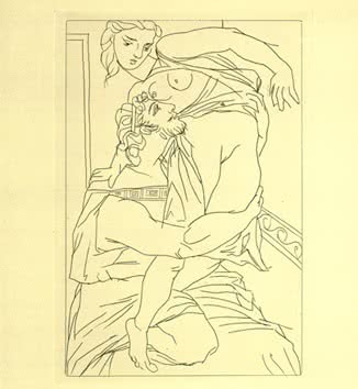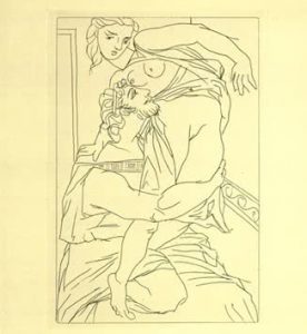 Gilbert Seldes, aguafuerte de Pablo Picasso (Cinesias y Mirrina) para Lysistrata de Aristophanes, 1934