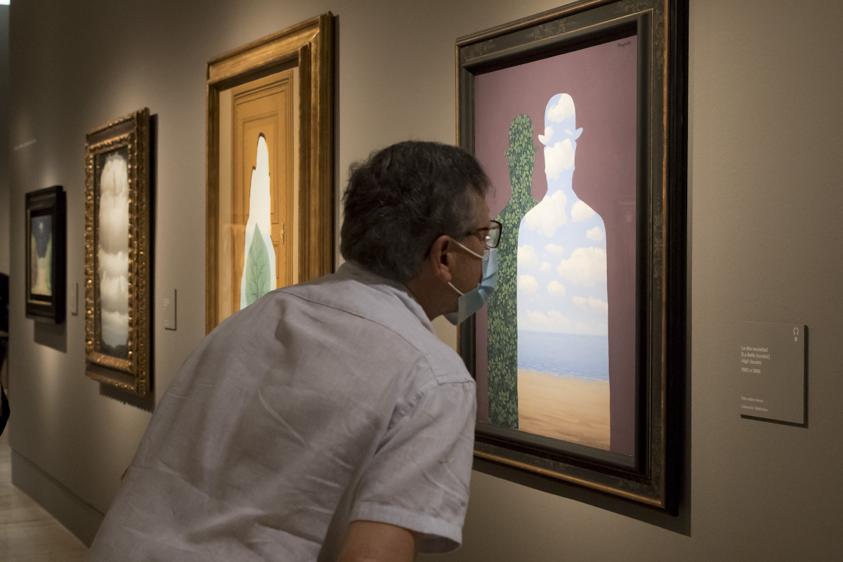 La muestra se divide en siete secciones: Los poderes del mago, Imágenes y palabras, Figura y fondo, El cuadro y la ventana, El rostro y la máscara, Mimetismo y Megalomanía.