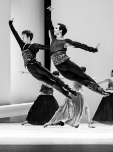 El espectáculo nunca se presenta frontalmente, los bailarines evolucionan siguiendo diagonales, nunca frente al público, recordando que un artista nunca mira a la cámara. Finalmente, cada bailarín del cuerpo de baile tiene su propio papel y puede distinguirse a través de una sola acción.