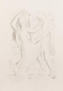 Rosario de Velasco. 'Las pastorales de Longo', 1940. Dibujo para el libro inédito 'Dafnis y Cloe'. Grafito sobre papel. © Rosario de Velasco, VEGAP, Almería, 2025.