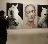 Aunque ha ido introduciendo poco a poco el color, si algo le caracteriza son los trazos grises y negros que desde sus comienzos han dado vida a sus enormes retratos, cuyos formatos recuerdan los de un plano corto del cine, y que parecen descubrir las fotografías a las que hacen referencia sus obras de temática teutónica.