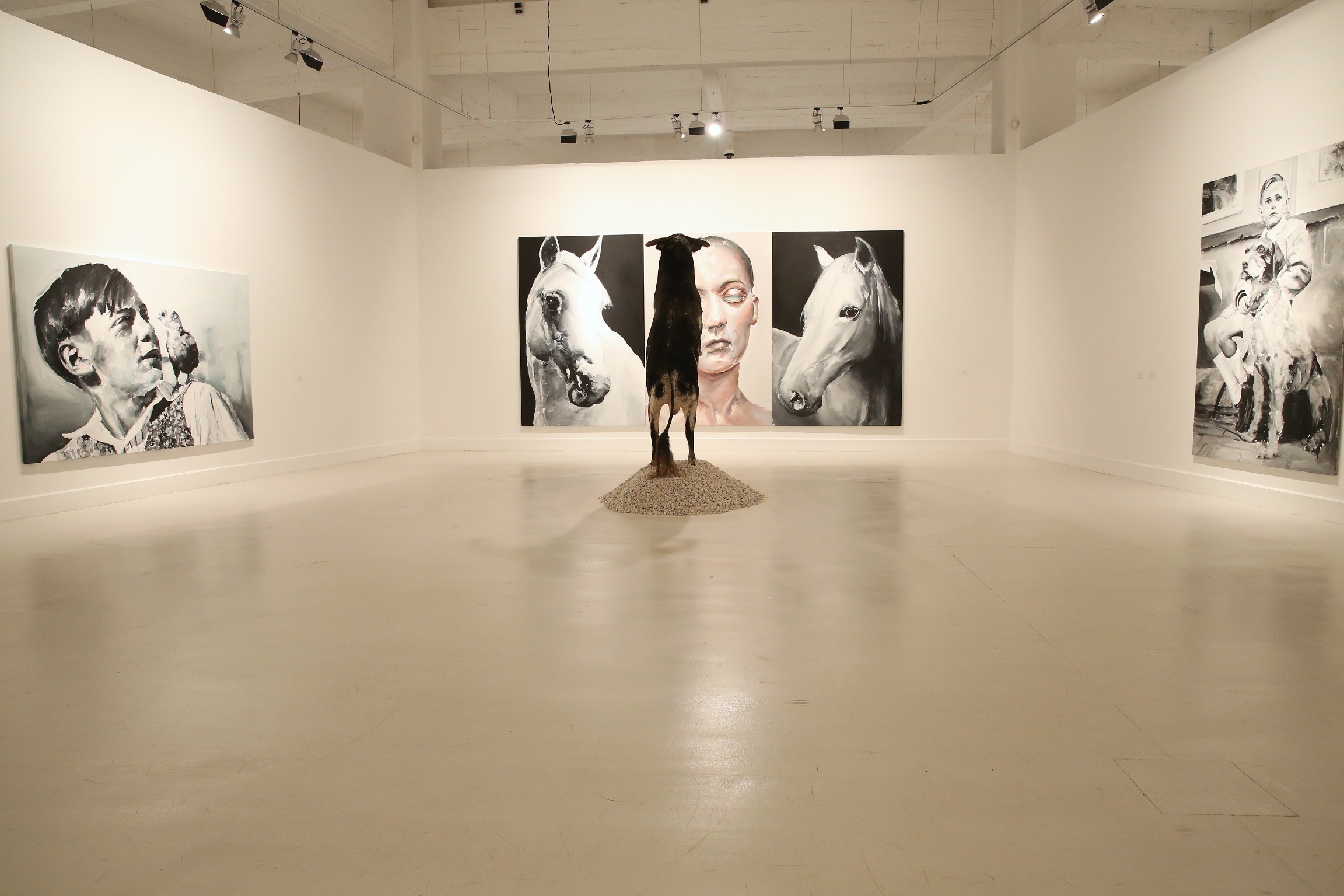 Forman parte de la exposición varias obras con temática animal, donde el tamaño del lienzo es vital. Por ejemplo, en San Mateo (2015), Ydáñez representa un pastor alemán recostado. El artista dota a los objetos de una nueva historia con su interpretación. Así se denota en su obra reminiscencias al nazismo, como la mirada nostálgica de una niña alemana por la pérdida de algo, en contraste con el paisaje idealizado sobre el que se sitúa la protagonista El Jardín de las Delicias (2017), obra que refleja el concepto de paraíso perdido.