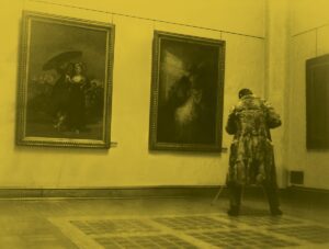 Sigmar Polke fotografiando el cuadro 'Las viejas', de Goya, en el Palais des Beaux-Arts de Lille, 1982 Fotografía © Britta Zoellne.