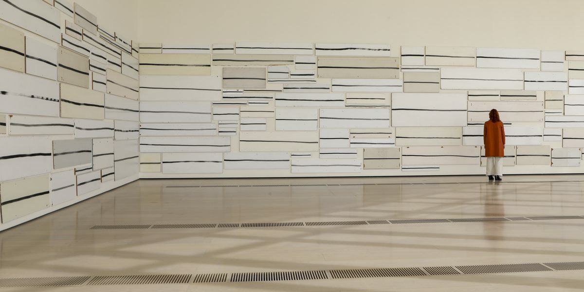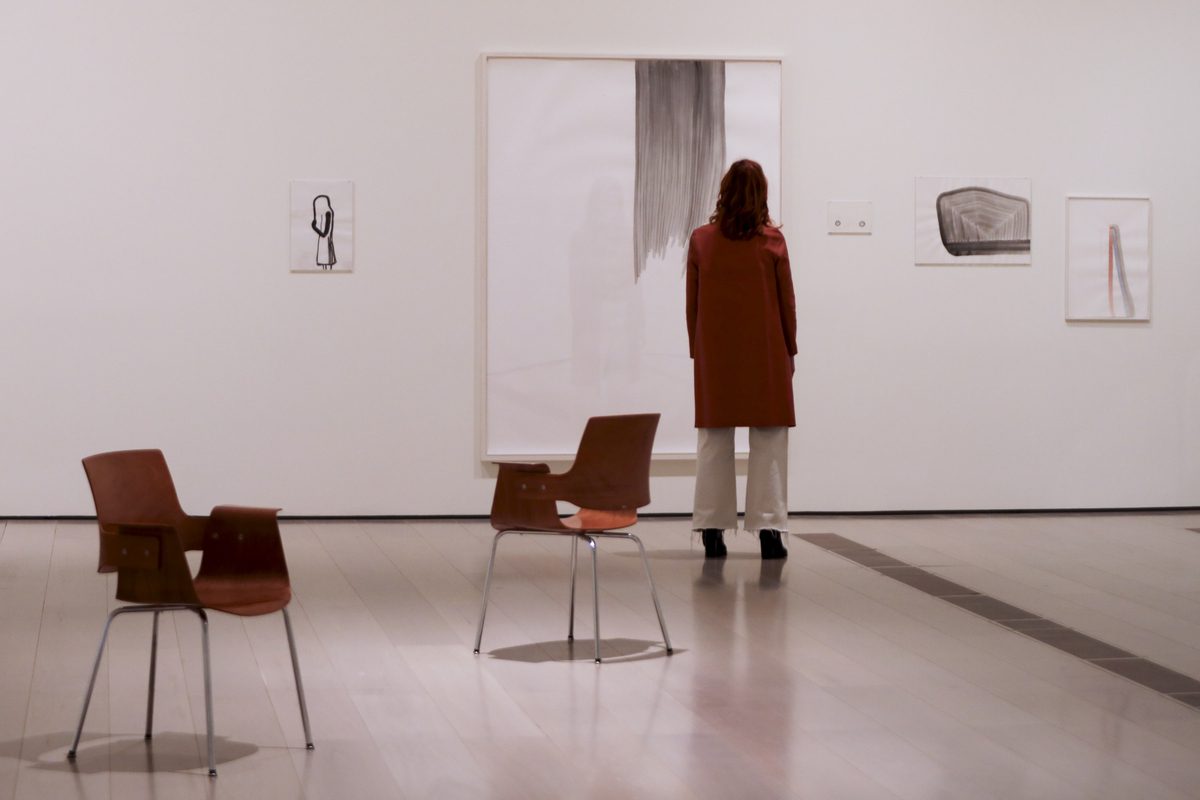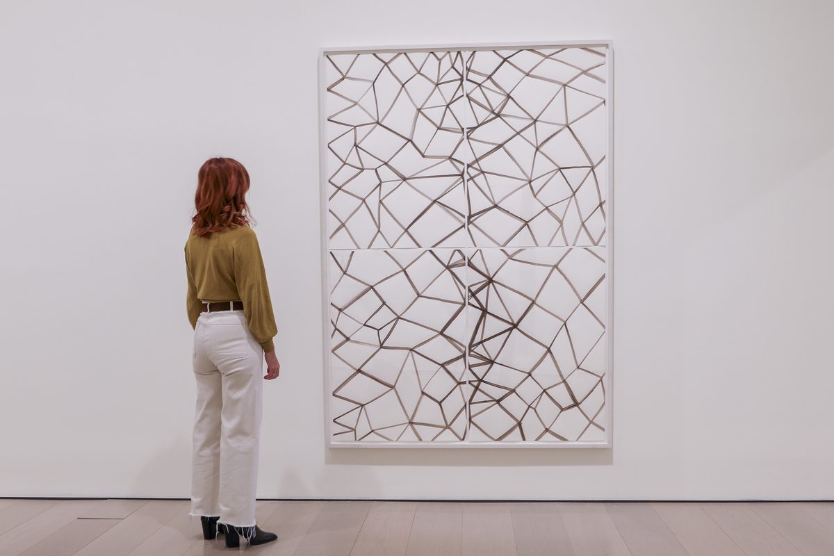Esta exposición arroja luz tanto sobre la continuidad como sobre los cambios progresivos que se dan en su obra: desde sus fragmentos de cuerpos nerviosos en blanco y negro y sus figuras femeninas ensimismadas, hasta sus interpretaciones en naranja quemado de la estructura reticular o sus recientes superficies expansivas en color.