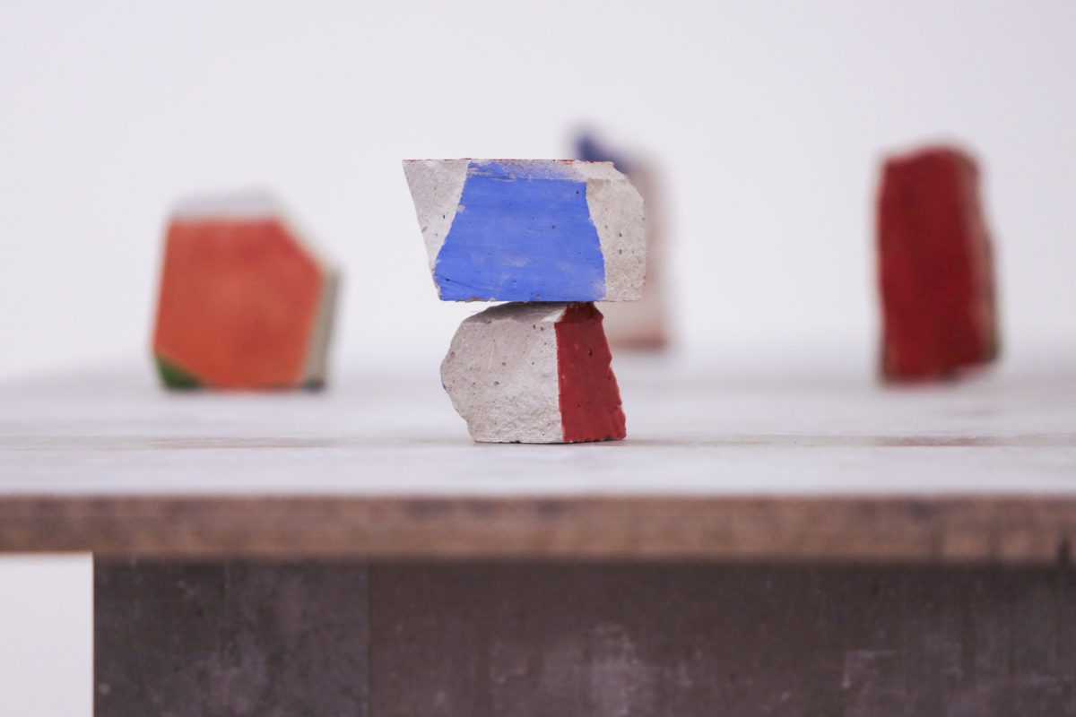 Bächli ha creado para esta muestra una partitura para el espacio expositivo: una secuencia de grupos rítmicos de dibujos ubicados a diferentes alturas e intervalos que van sumando significado en su persistente acumulación. La artista trabaja insistentemente con medios modestos y limitantes: papel blanco de diferentes tamaños, cualidades y tonos sobre el que aplica tinta china, carboncillo, gouache o pastel. Su proceso es secuencial: dibuja en hojas de una pila, una tras otra, y va disponiendo constelaciones de obras en la pared de su estudio que son consecutivamente interrogadas, reorganizadas y rechazadas, hasta que descubre algo que le parece adecuado y sorprendente.