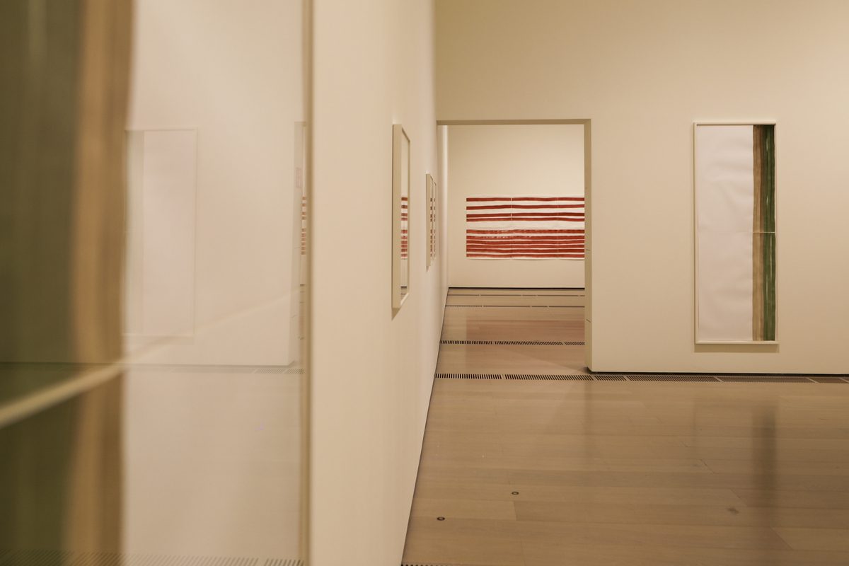 Esta muestra ofrece una mirada exhaustiva a la evolución de la práctica artística de Silvia Bächli que incluye, entre otras obras, una instalación mural realizada en colaboración con el artista visual suizo Eric Hattan y das (eso o esto en alemán), y su instalación para el Pabellón de Suiza en la Bienal de Venecia de 2009, inspirada por la poeta Inger Christensen. También se expone Farbfeld (Campo de color, 2022-2024), un nuevo conjunto de obras en papel que empezó a crear utilizando gouache, con la que crea superficies coloreadas que van de lo translúcido a lo opaco, explorando así la fluidez y la textura de la pintura.