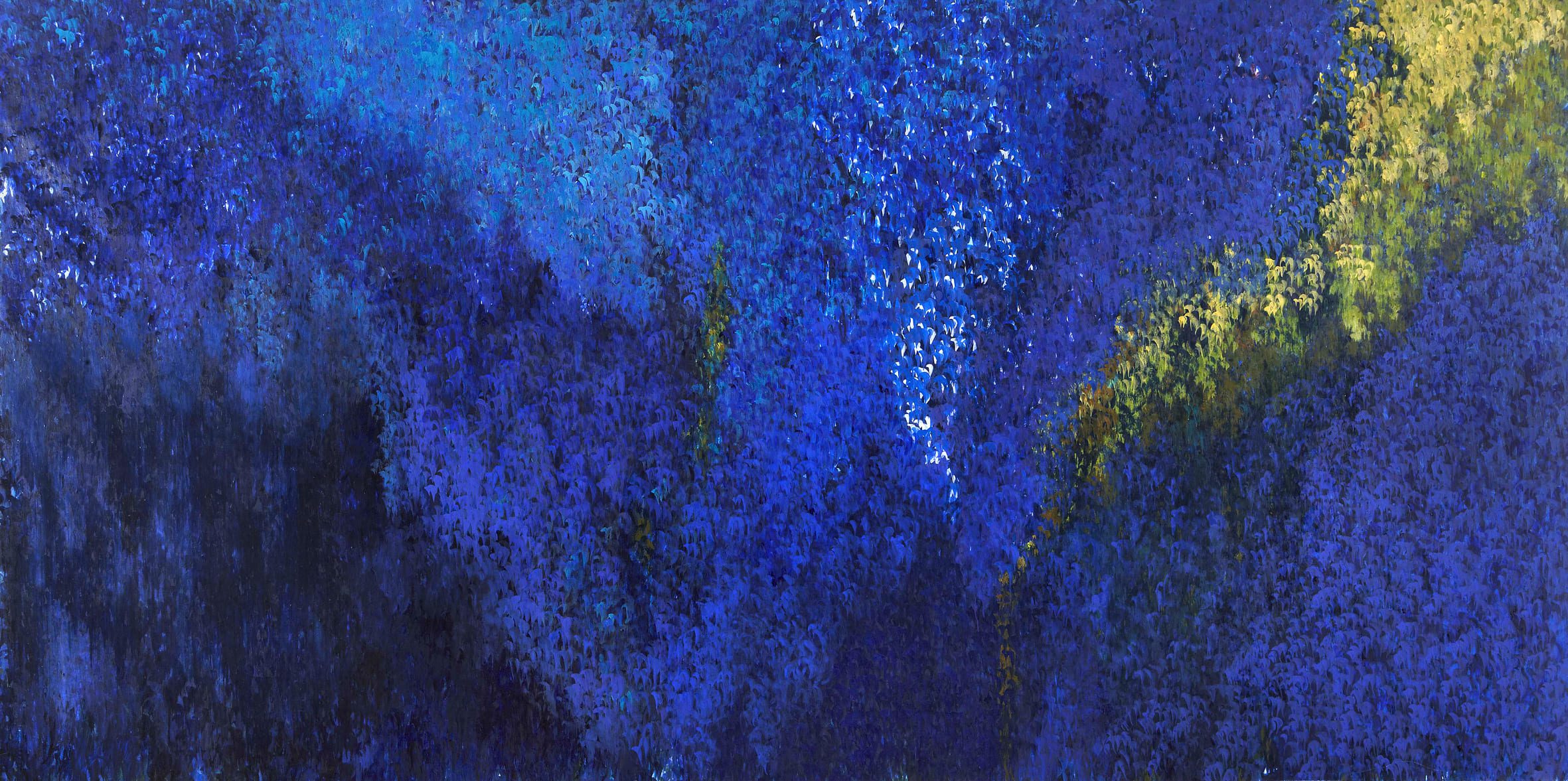 4. Muros. De la abstracción geométrica más pura se transita en sus Muros a la abstracción más lírica, obras en las que confluye lo geométrico y lo orgánico, en las que el gesto se evidencia y aparece el ritmo de la pincelada, como se suceden y acumulan las hojas de las plantas trepadoras que envuelven los muros de la carrera del Darro de Granada. Estas –Sal y Sica– son obras inspiradas en el mundo vegetal, abriendo la conexión con una naturaleza a veces expresa, pero muchas veces enmarcada en elementos que enfatizan la fuerza de la poesía que exhala la creación de Soledad Sevilla: enormes cuadros formados por hojas de diferentes tonalidades que podrían ser el fragmento de una enredadera infinita. Hojas de diferentes tonalidades, con variaciones sutiles, que evocan el paso del tiempo, la fugacidad de la materia, la frágil permanencia de las cosas y de la propia vida. A fin de cuentas a la artista le fascina lo pasajero.
