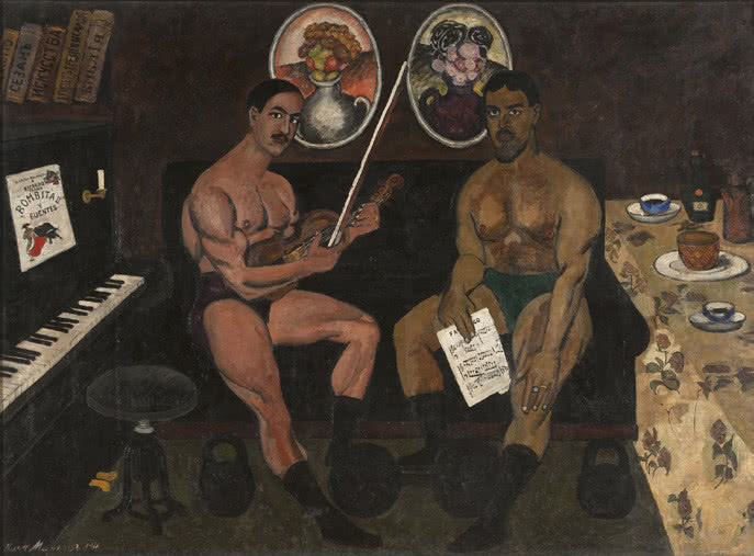 Iliá Mashkov. Autorretrato y retrato de P. P. Konchalovski. 1910.