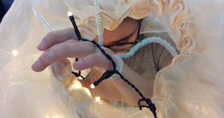 Mi forma de desarrollar un nuevo lenguaje de movimiento siempre ha sido a través de redefinir lo familiar restringiendo el cuerpo: con calzados extraños como plataformas, vestuario laborioso como cortinas y obstaculizando los sentidos, por ejemplo mediante la luz. Por eso utilizaré objetos sencillos para cultivar un reentendimiento de aquello con lo que nos sentimos muy familiarizados y damos por hecho. Desaprenderemos las cosas juntos. Interpretaremos un lenguaje que no podemos emitir. Intensificaremos las formas de estar presentes y ser comunicativos.