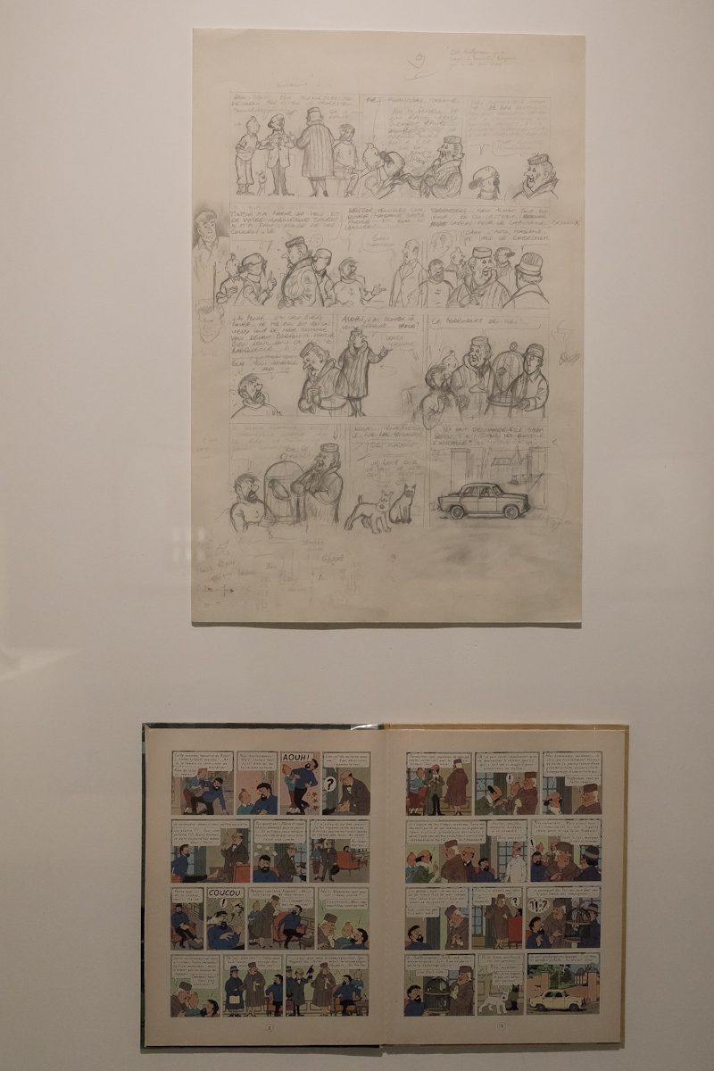 Los visitantes pueden explorar los procesos creativos detrás de sus álbumes más célebres, su trabajo en el estudio, sus influencias marcadamente cinematográficas, su diálogo con el arte contemporáneo, sus diferentes pasos como creador, desde el modelado de objetos o edificios hasta la coloración. Para ello, la muestra incluye documentos, dibujos originales y muchas otras obras del artista y ‘padre’ del personaje. Desde la ilustración hasta el cómic, con incursiones en la publicidad, viñetas en periódicos, diseño de moda y artes plásticas. Así se exhiben tesoros de las colecciones del Musée Hergé de Bélgica como bocetos, clips de películas y modelos. Además, por primera vez en España, se mostrará parte de su colección privada de arte contemporáneo y también sus propias obras, inspiradas por artista como Modigliani, Klee o Miró.