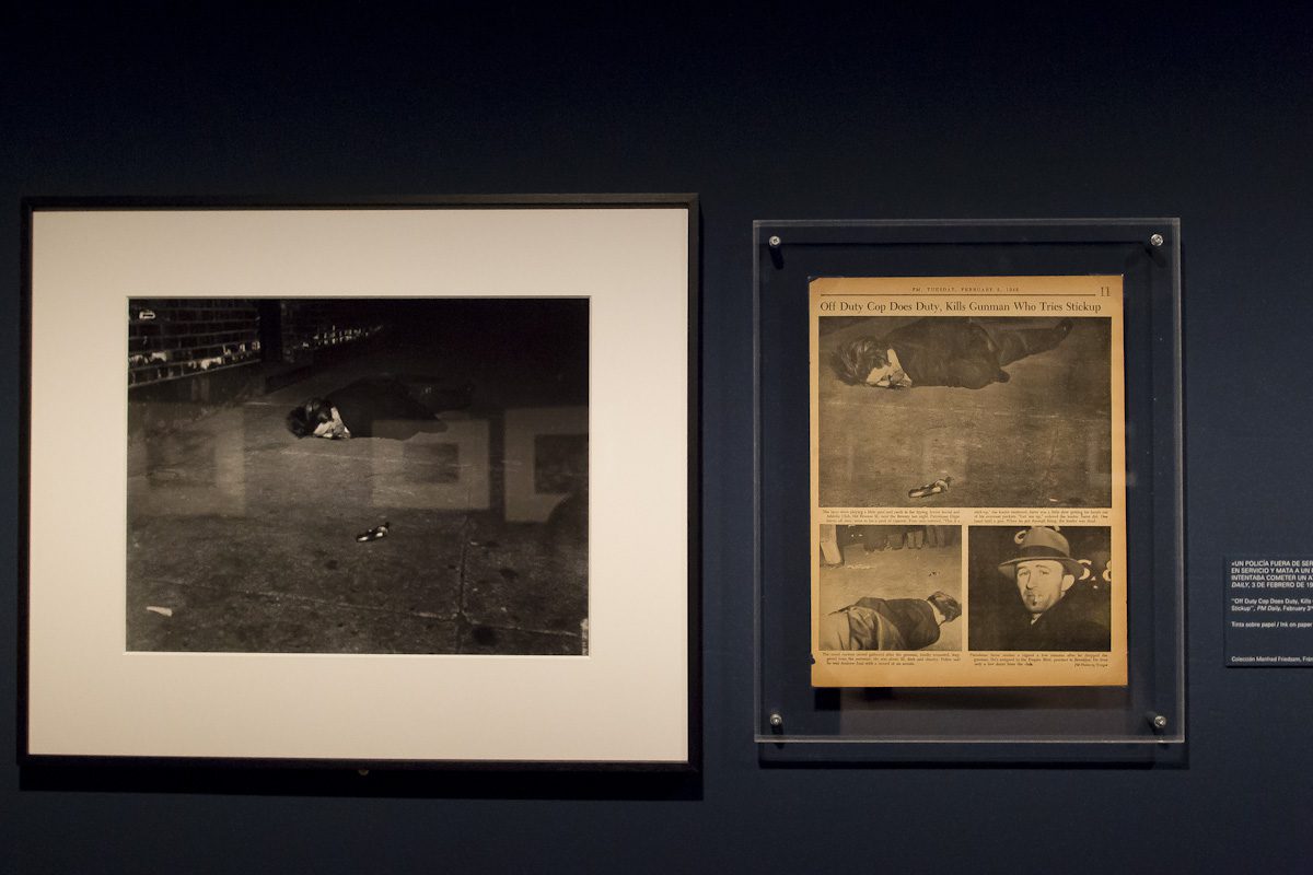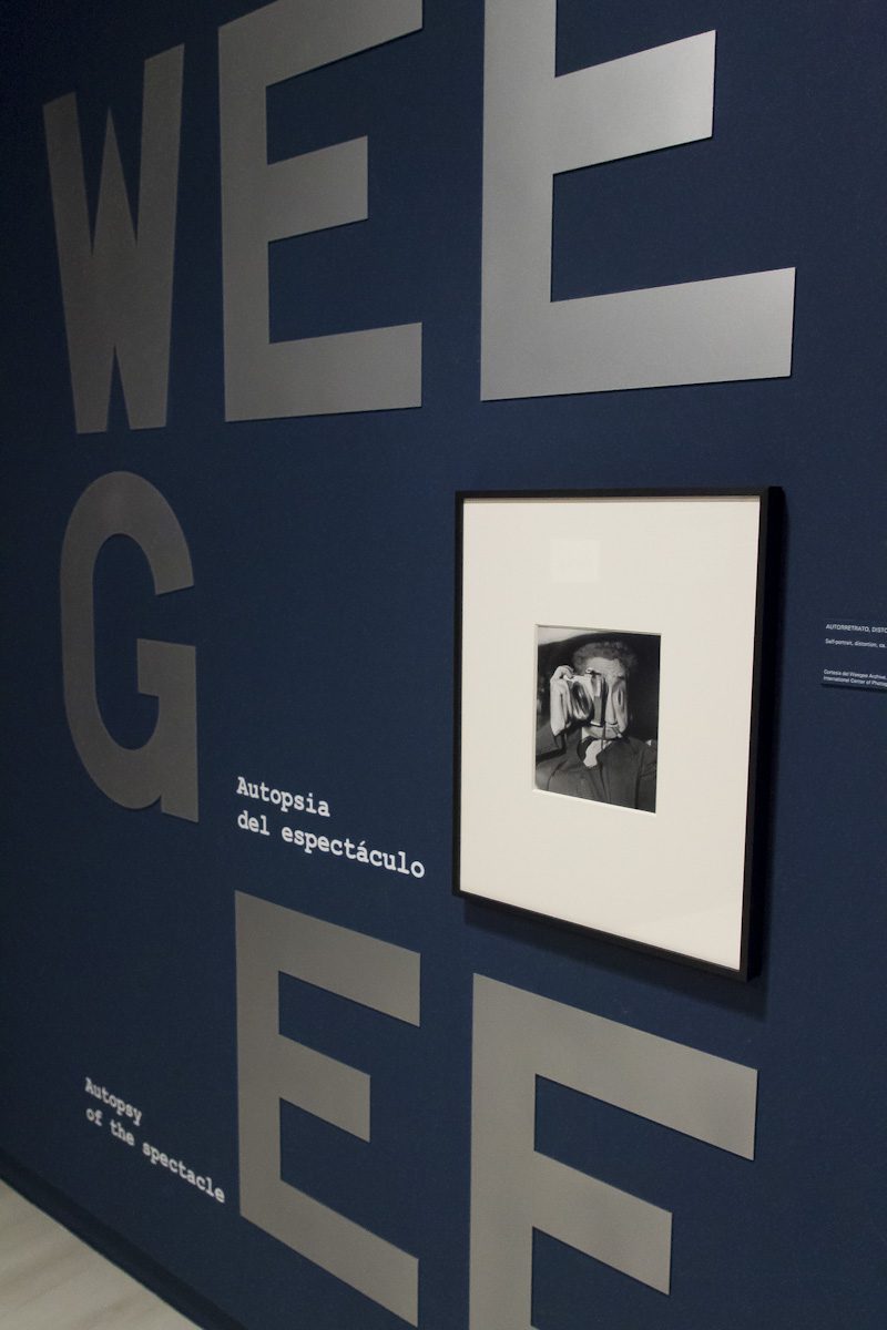 La trayectoria de Weegee parece escindida en dos partes. Por un lado, los sucesos –cadáveres, incendios, detenidos en furgones policiales, etc.– que fotografió para la prensa neoyorquina entre 1935 y 1945, y que le hicieron muy popular; por el otro, las fotocaricaturas de personalidades públicas que desarrolló en su época de Hollywood, entre 1948 y 1951, y que siguió practicando hasta el final de su vida. ¿Cómo pueden coexistir dos corpus tan diametralmente opuestos en una misma obra?