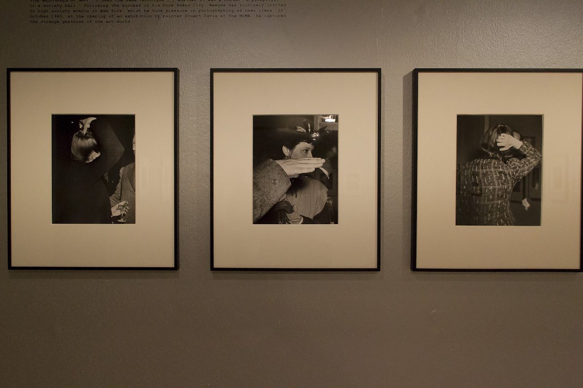 Los estudiosos han sido muy aficionados a recalcar la oposición entre estos dos períodos, ensalzando el primero y detestando el segundo. Esta muestra, comisariada por Clément Chéroux, director de la Fondation Henri Cartier-Bresson, aspira a reconciliar los dos Weegee, haciendo ver que, más allá de las diferencias estilísticas y temáticas, su planteamiento se basaba en una profunda coherencia que enlaza ambas etapas.