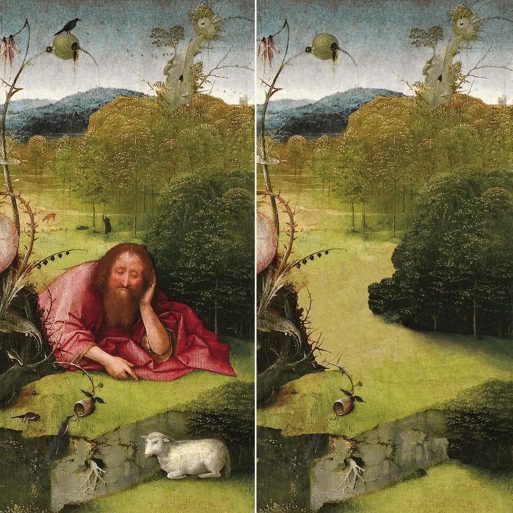 Entre las obras de Ballester puede destacarse el Jardín deshabitado, inspirado en el famoso tríptico del Bosco custodiado en el Prado y que se incluye en la muestra con el objetivo de realizar otro pequeño homenaje a este pintor en el quinto centenario de su muerte. Basándose en la misma pintura del artista flamenco se proyecta por primera vez el vídeo Councealed Garden, en el que se analiza la composición, las figuras geométricas y líneas maestras que definen El Jardín de las Delicias.